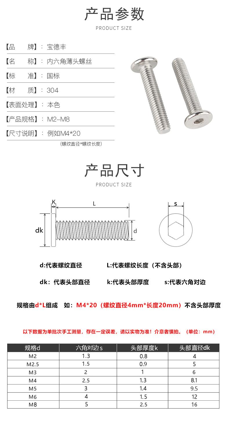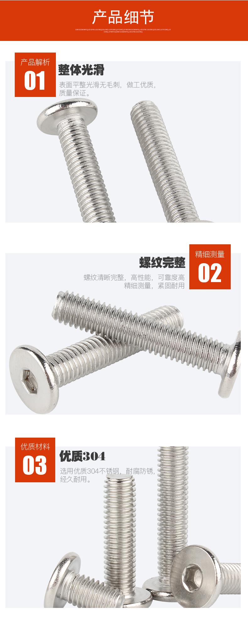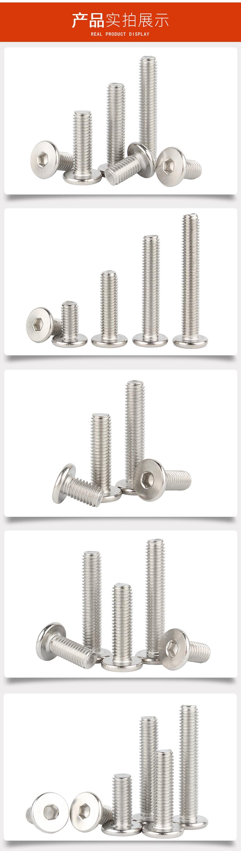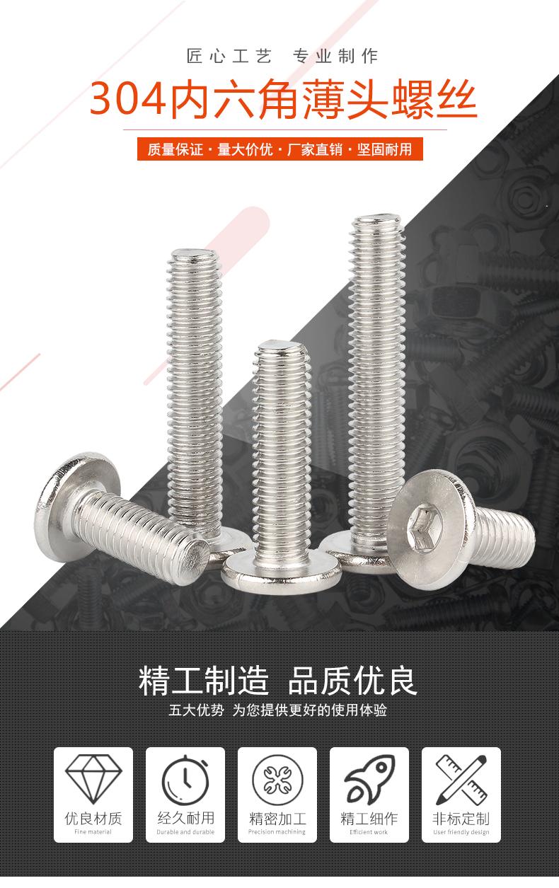 Tornillo de cabeza plana y delgada de acero inoxidable 304, con hexágono interior, perno de cabeza plana grande, tornillo ultrafino M2M2.5M3M4M5M6M8