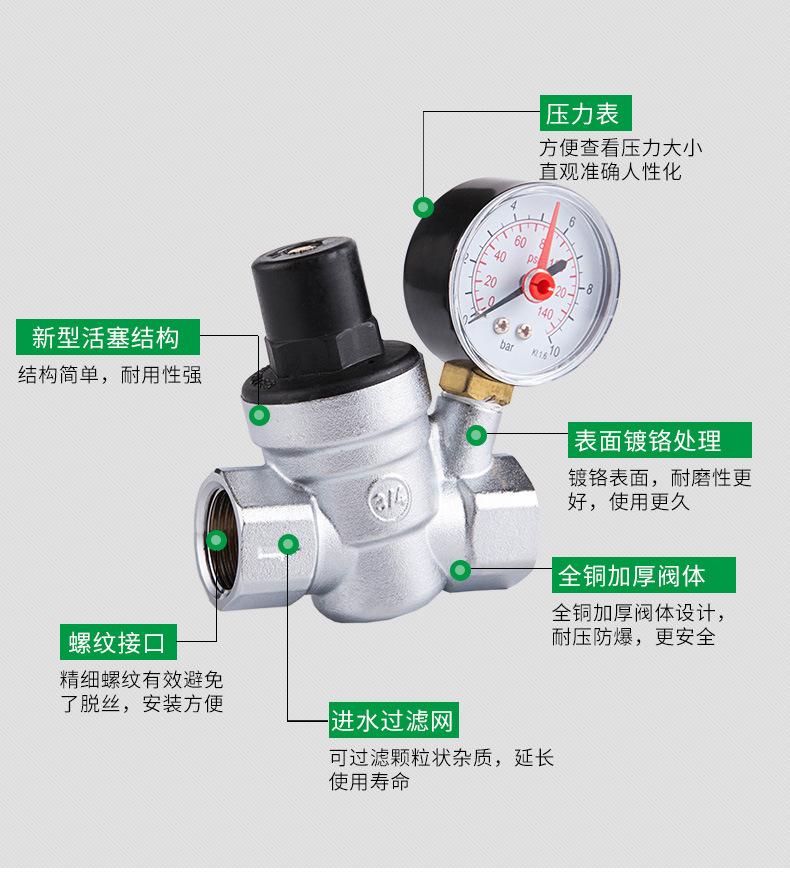 Compra Válvula angular de latón cromado, válvula reductora de presión con medidor, válvula reguladora de presión de agua para edificios residenciales, válvula de alivio de presión al por mayor en Joom.pro