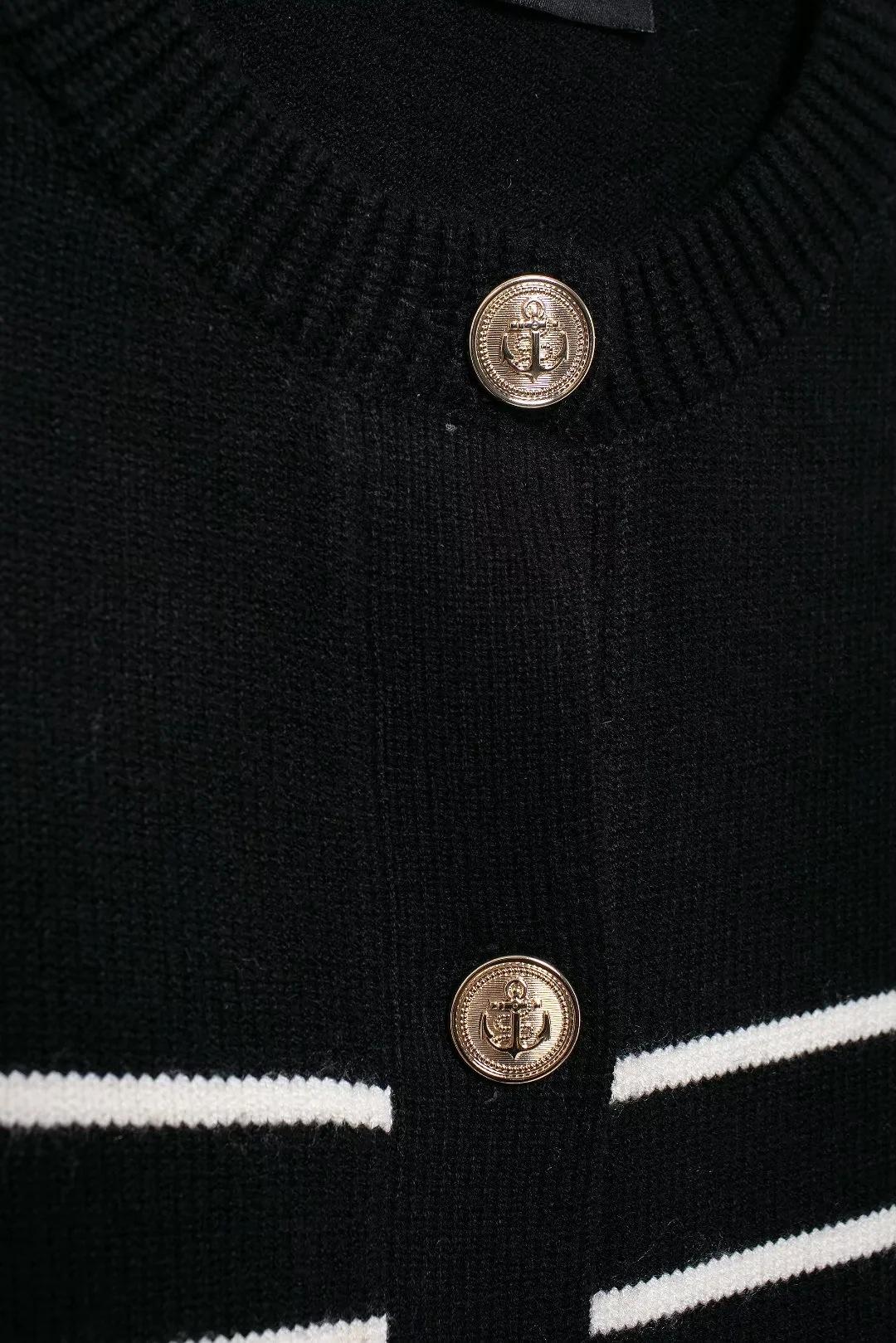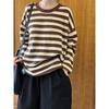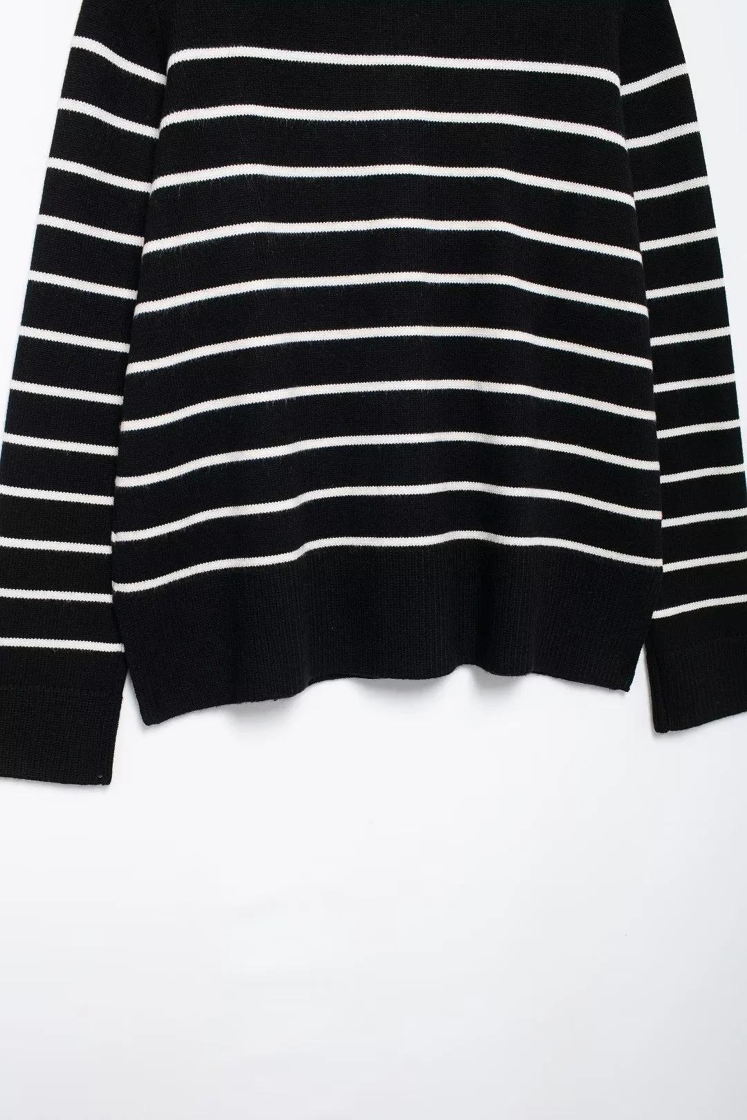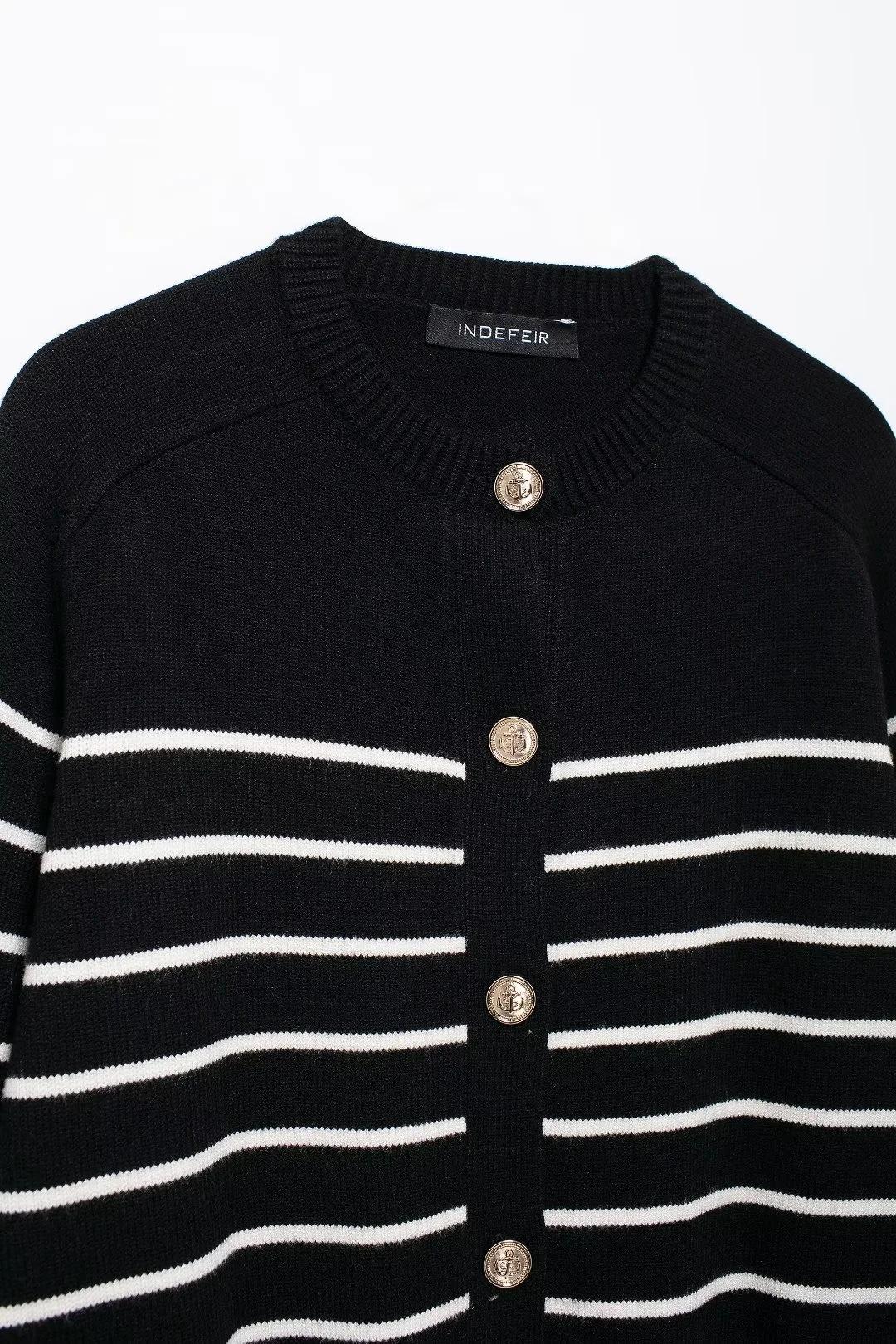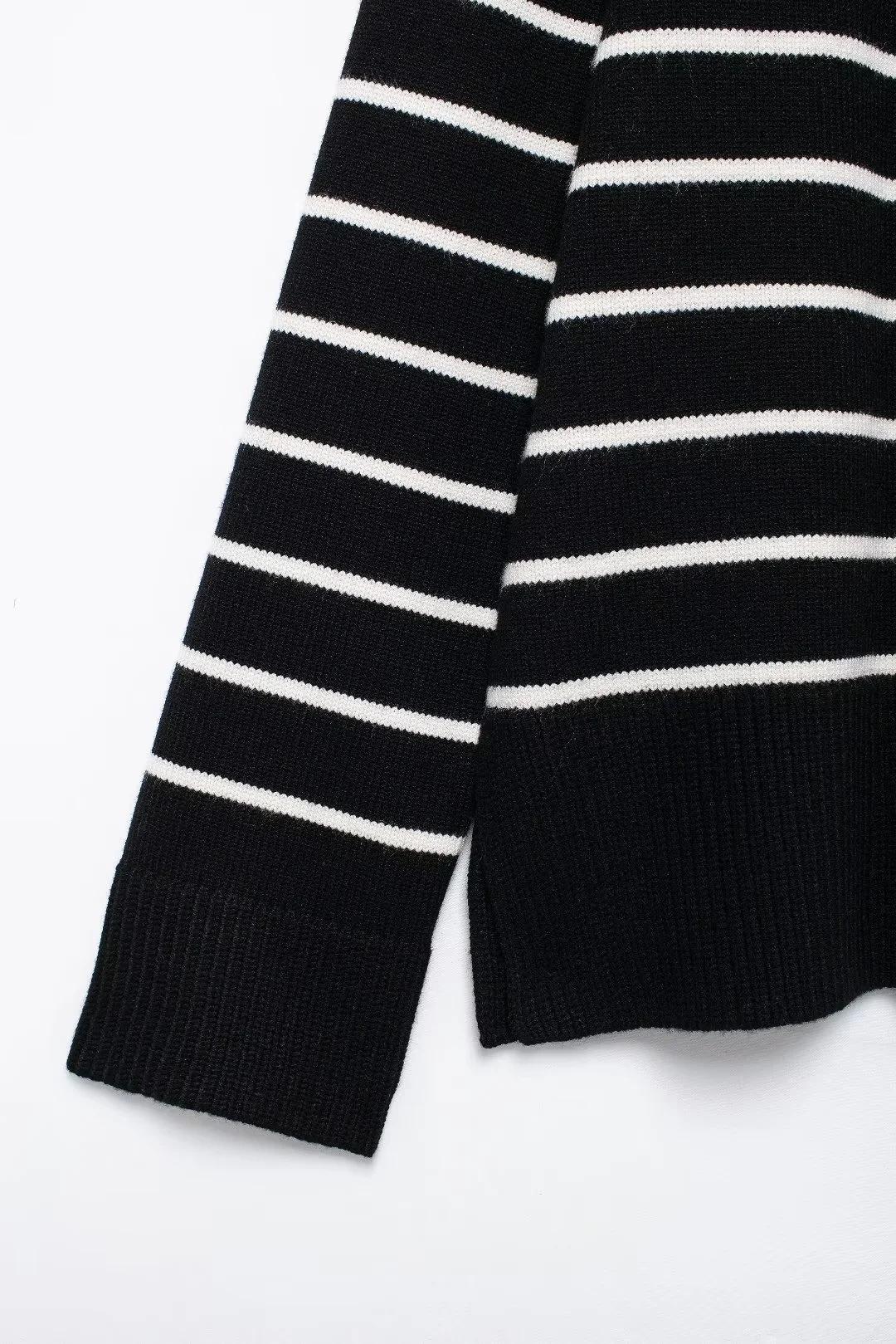 Chaqueta de punto holgada de manga larga con cuello redondo y rayas blancas y negras para mujer, estilo transfronterizo europeo y americano, otoño 2024