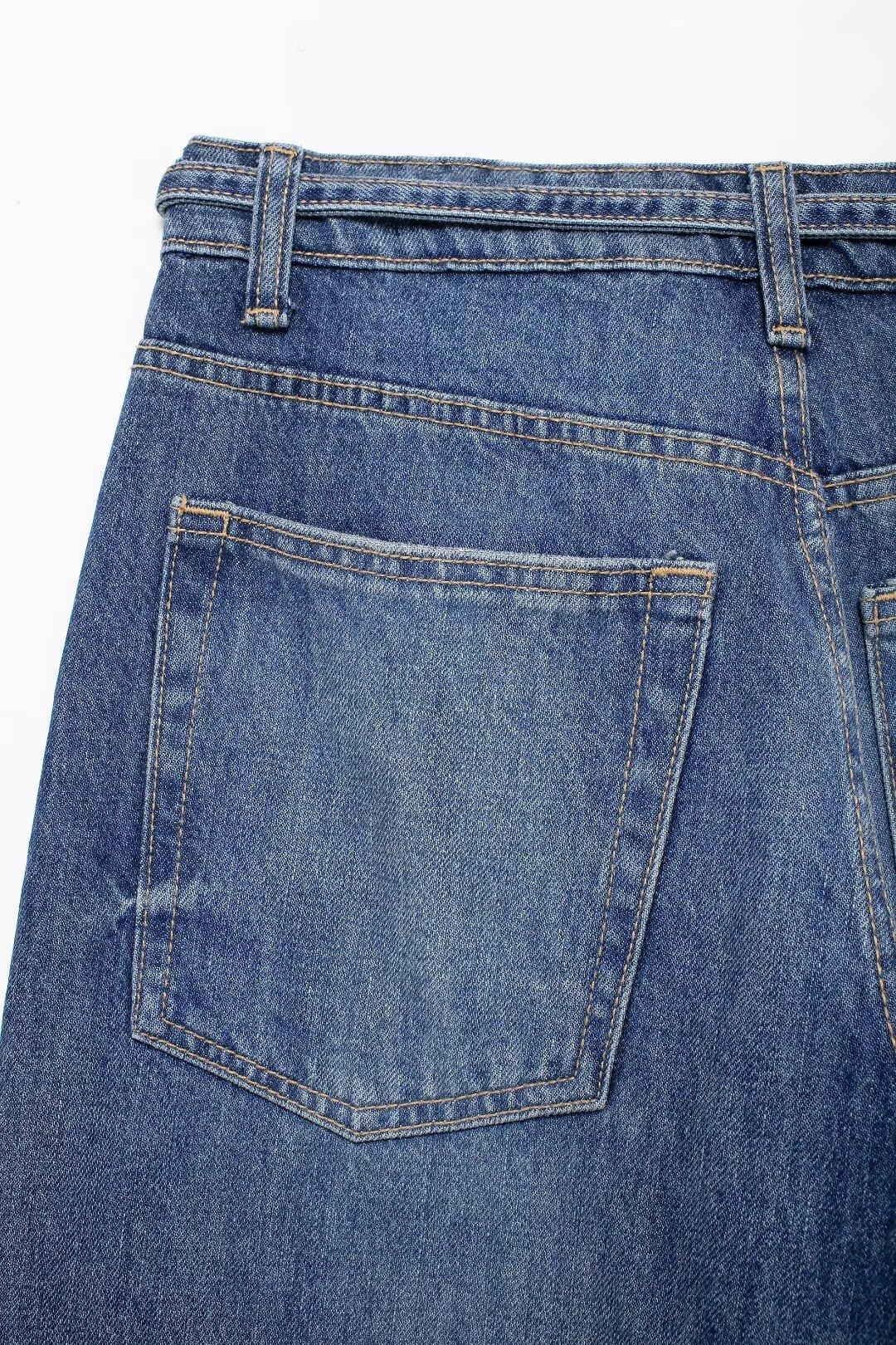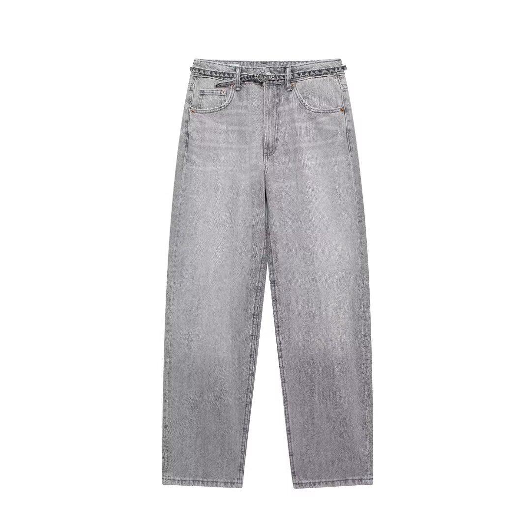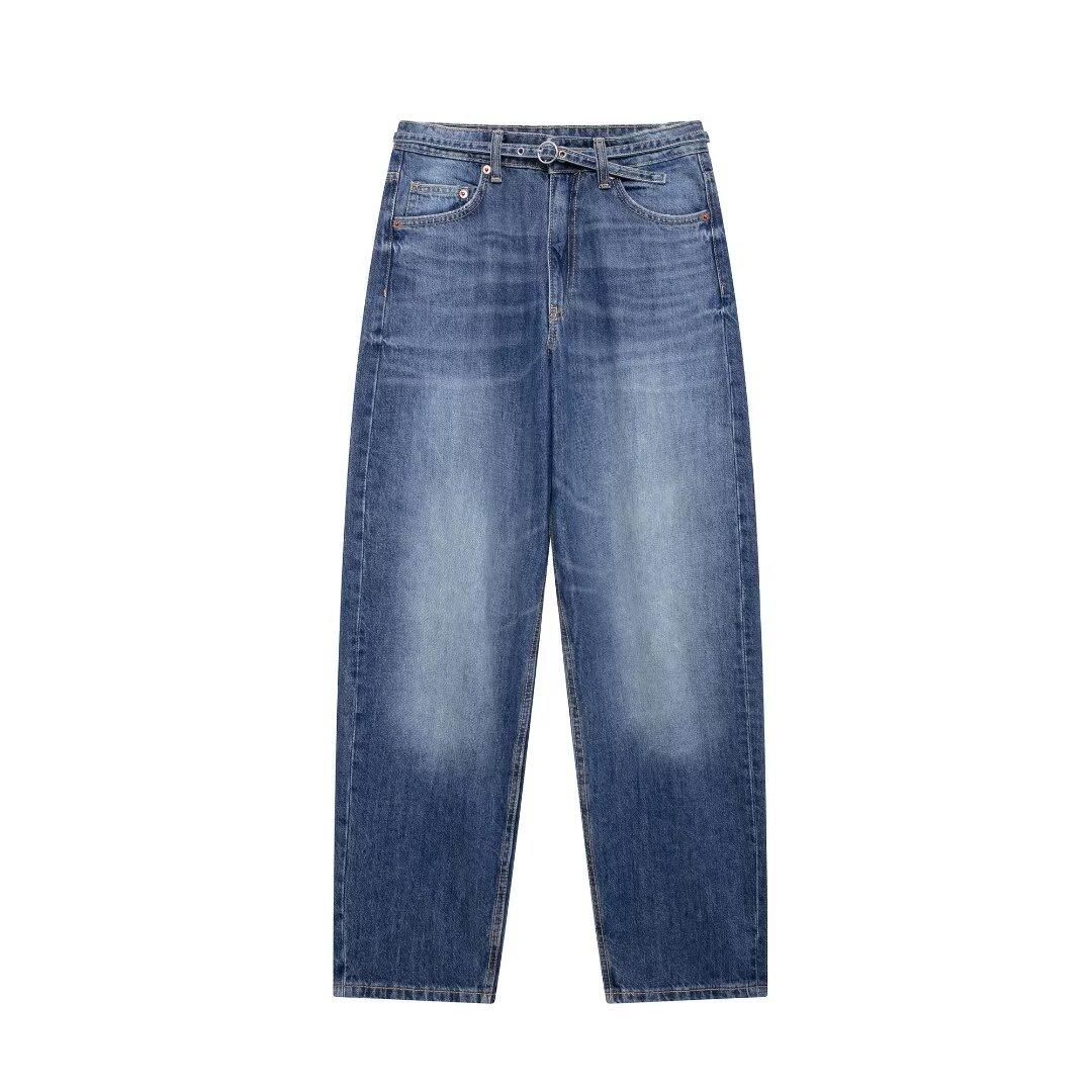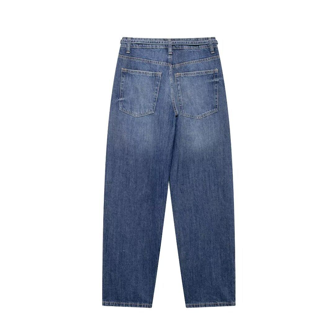 Otoño e Invierno 2024 Jeans Rectos de Cintura Media para Mujer American Spice Girls Diseño de Moda Cinturón Pantalones de Papá