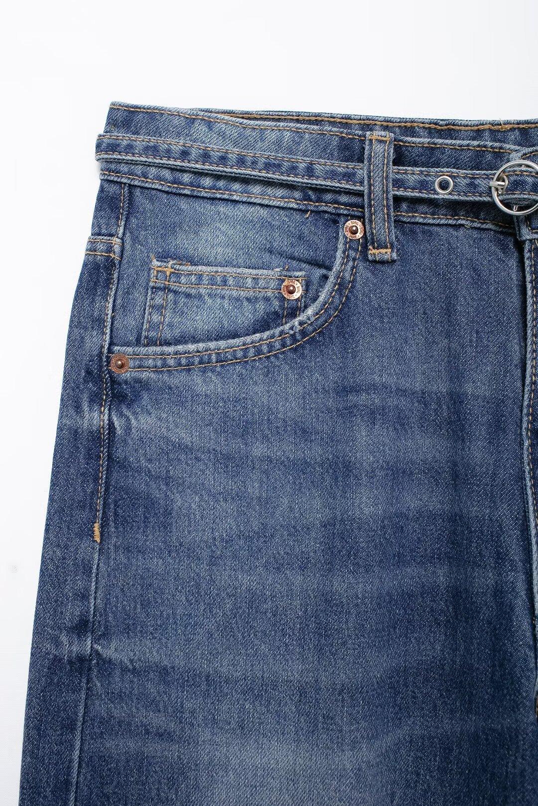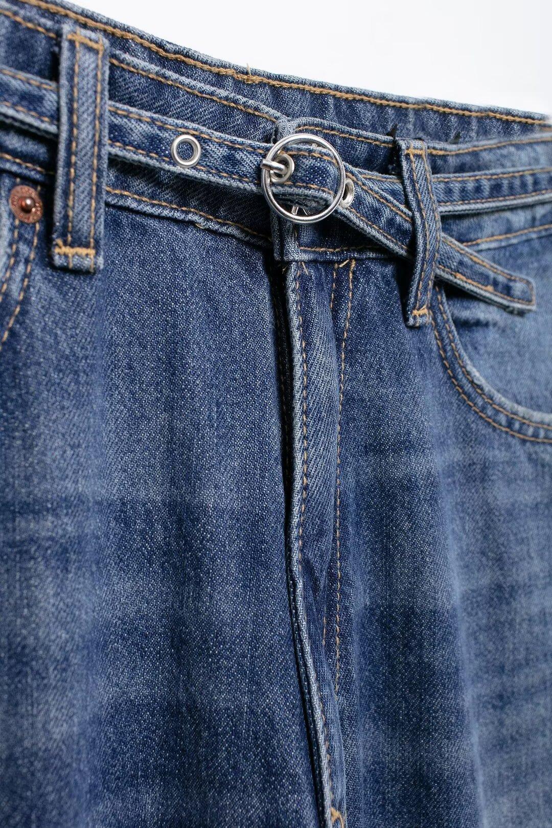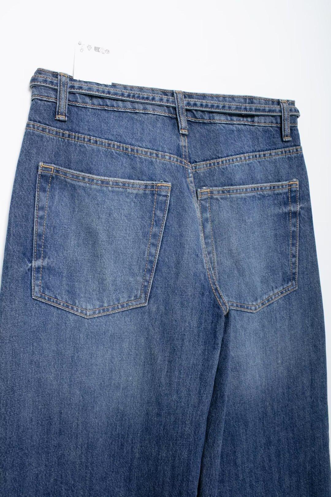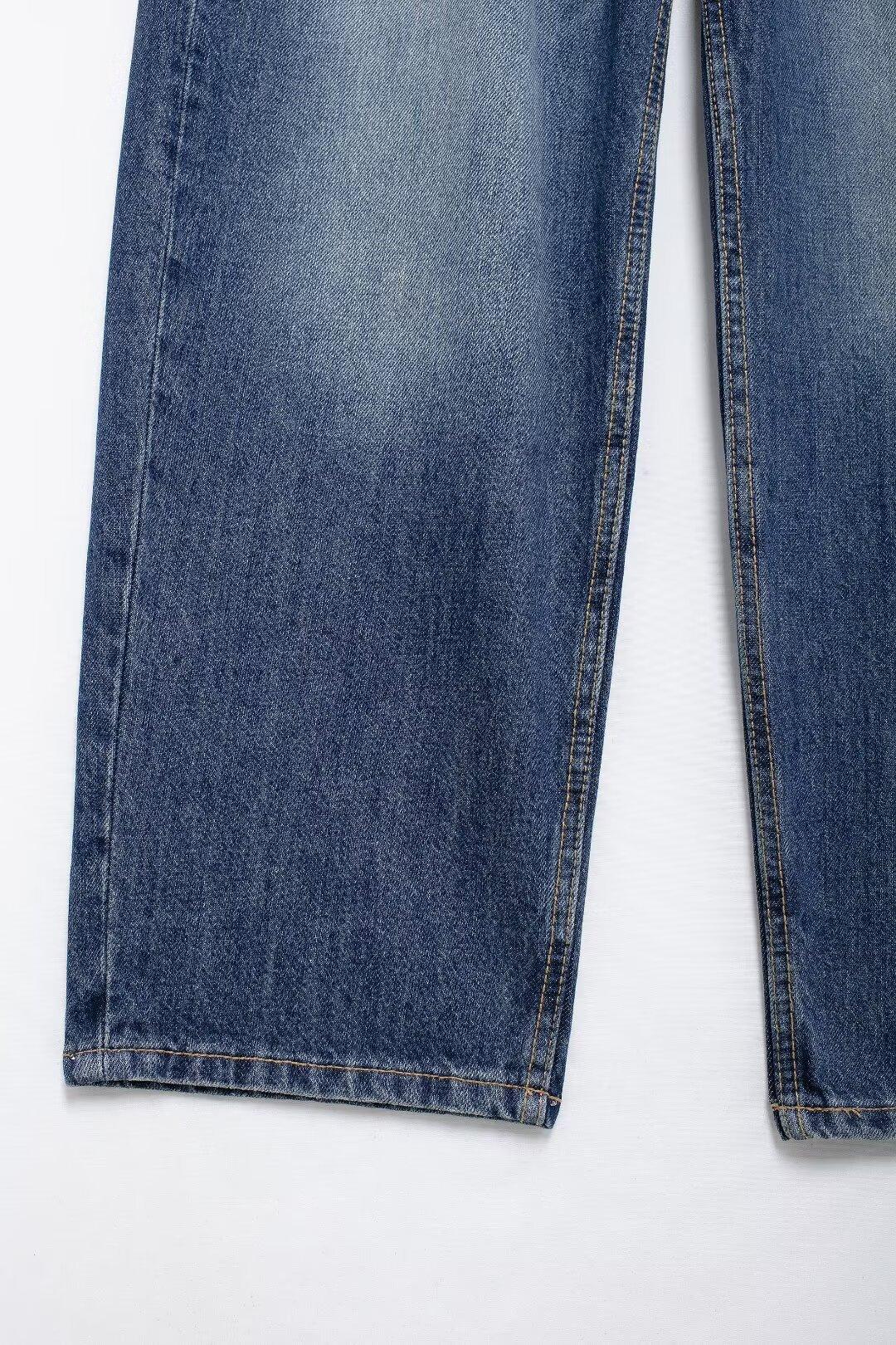 Otoño e Invierno 2024 Jeans Rectos de Cintura Media para Mujer American Spice Girls Diseño de Moda Cinturón Pantalones de Papá