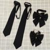 Conjunto de camisa de uniforme a juego de lana peinada básica negra de color liso con lazo de flores y cuello sin atar, moda estudiantil