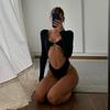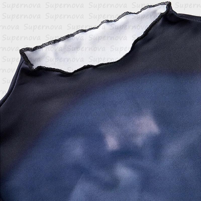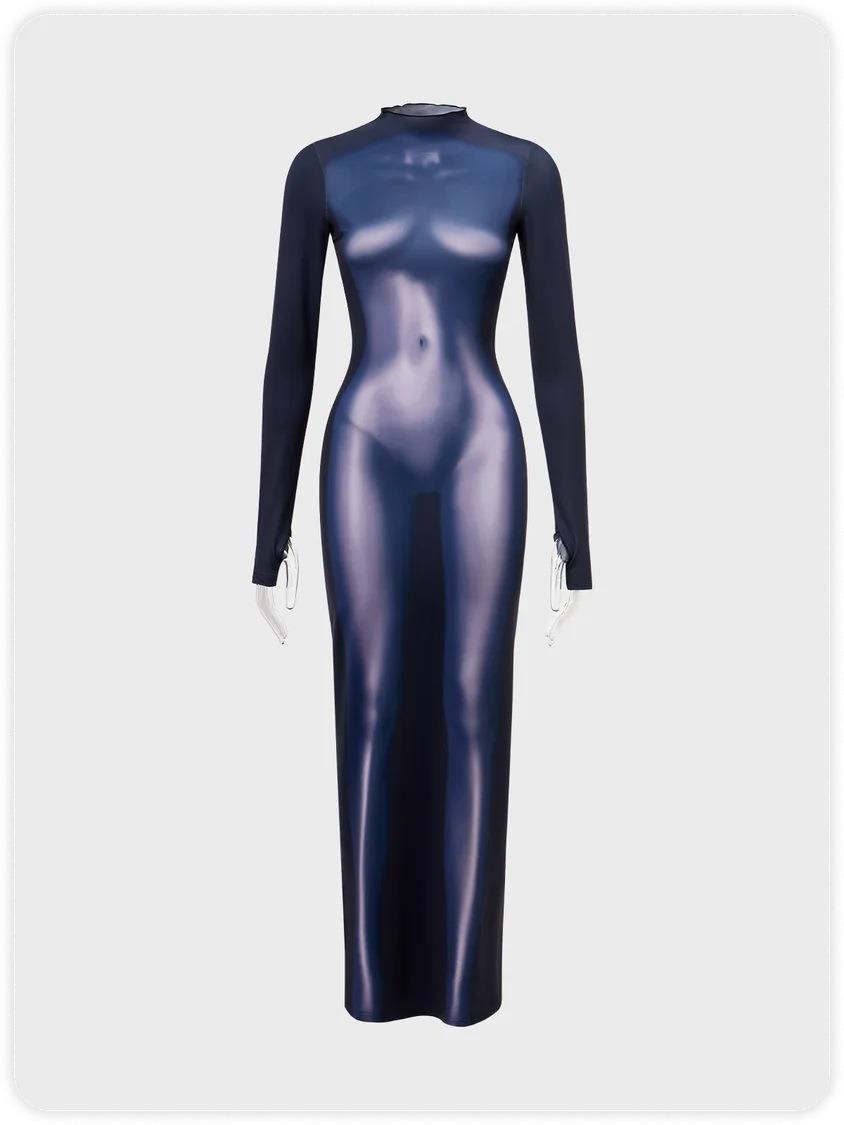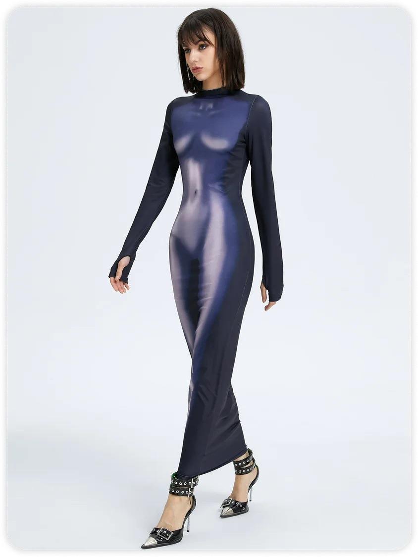 Vestido Europeo y Americano Transfronterizo Degradado de Manga Larga Cuerpo Humano Cuello Redondo Estampado Sexy Mostrando Pechos Y2K Retro Ajustado Sexy