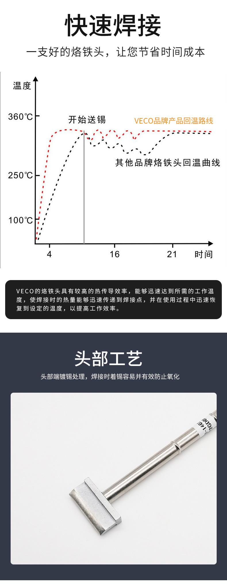 Cabezal de soldador VECO serie T12 con núcleo calefactor interno integrado. Venta al por mayor transfronteriza. Cabezal de soldador T12-1403.