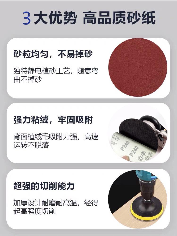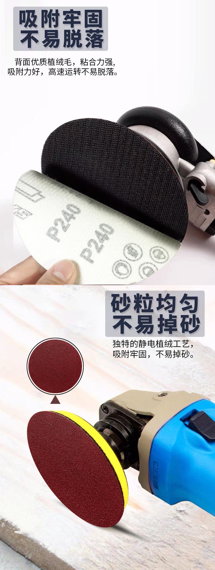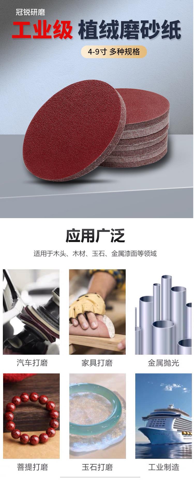 Papel de lija de flocado de arena roja de 5, 4, 7 y 9 pulgadas para amoladora de pared de carpintería, pulido, papel de lija autoadhesivo cepillado redondo