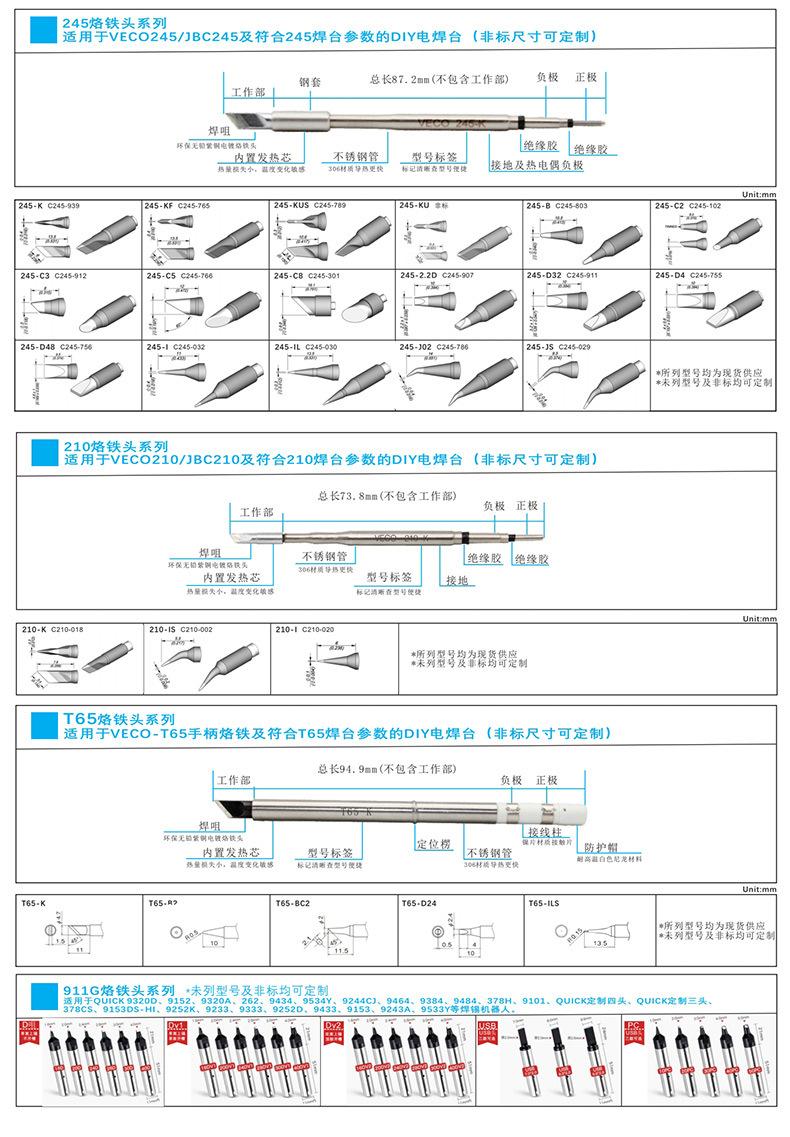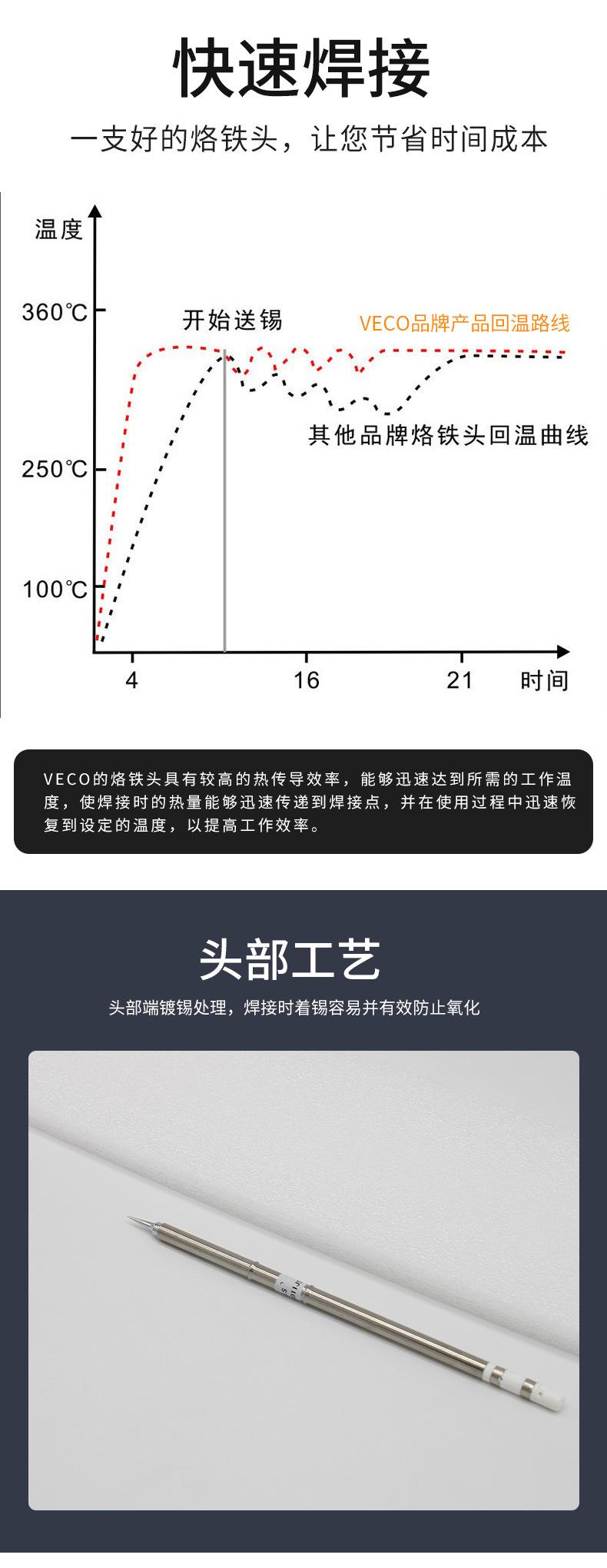 Puntas de Soldador Serie Vecot12 Núcleo de Calentamiento Interno Integrado Venta al por Mayor Transfronteriza T12-Ils Certificación Multipaís