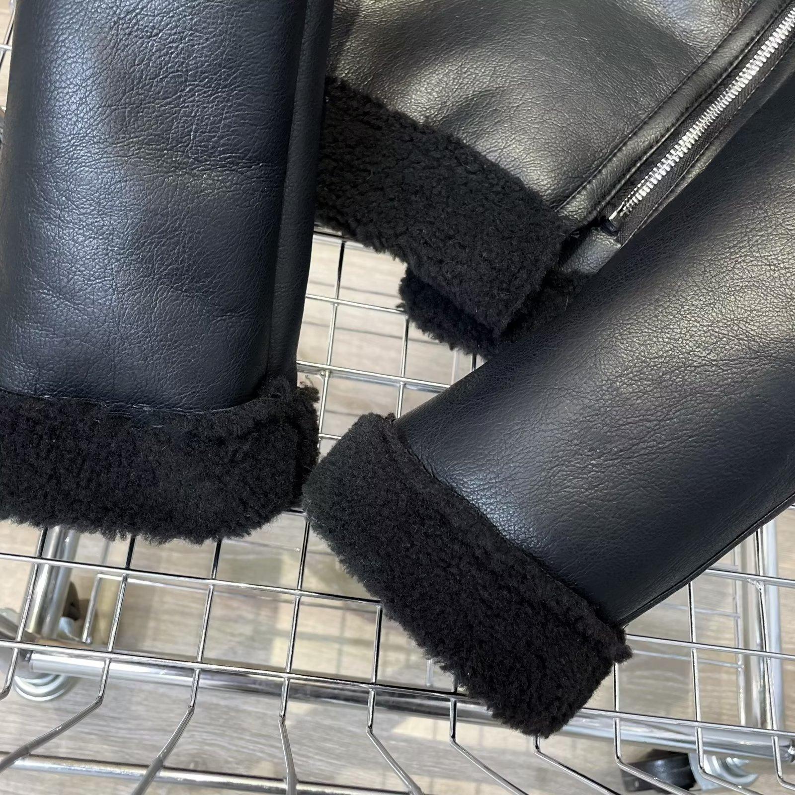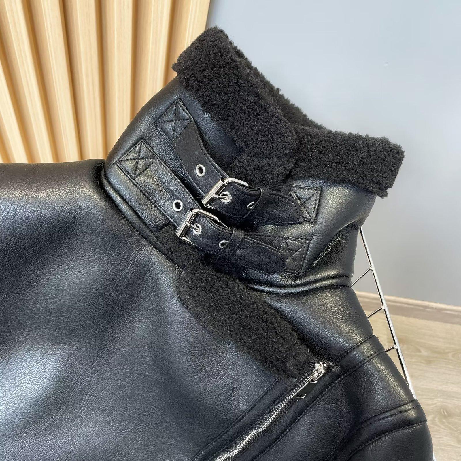 Suministro Transfronterizo Venta al por Mayor Otoño Europeo, Americano, Europeo y Americano Transfronterizo Moda para Mujer Negro Slim y Cálido Invierno Clip Integrado de Piel de Doble Cara