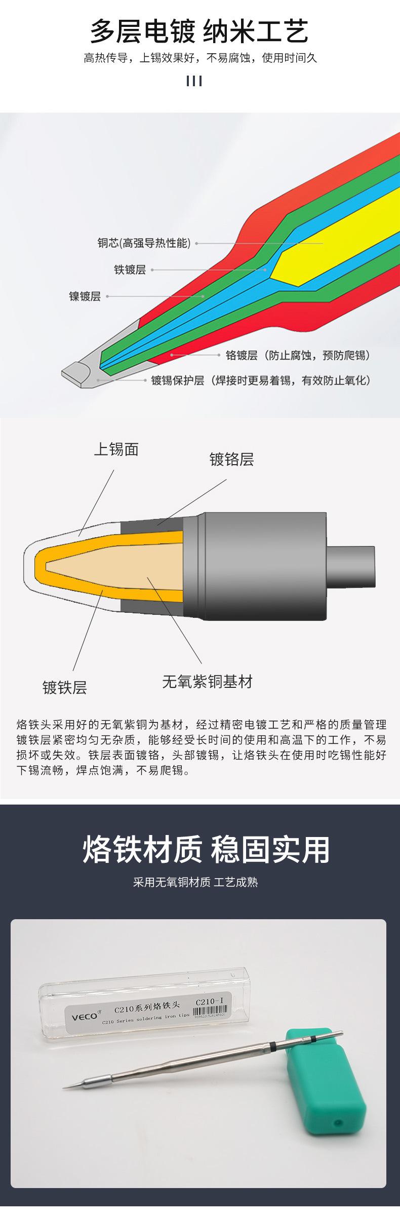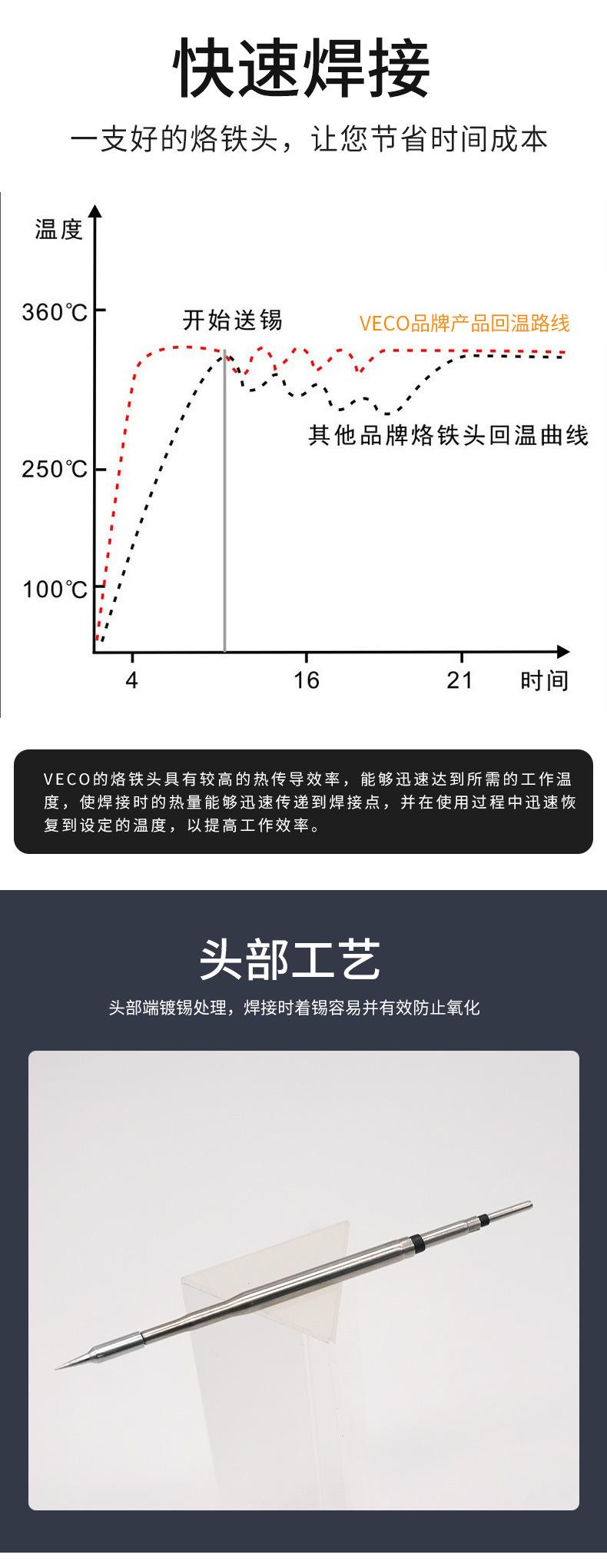 Puntas de Soldador Serie Vecoc210 Núcleo de Calentamiento Interno Integrado Venta al por Mayor Transfronteriza 210-I Soldadura Respetuosa con el Medio Ambiente