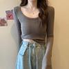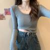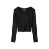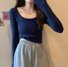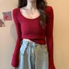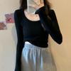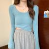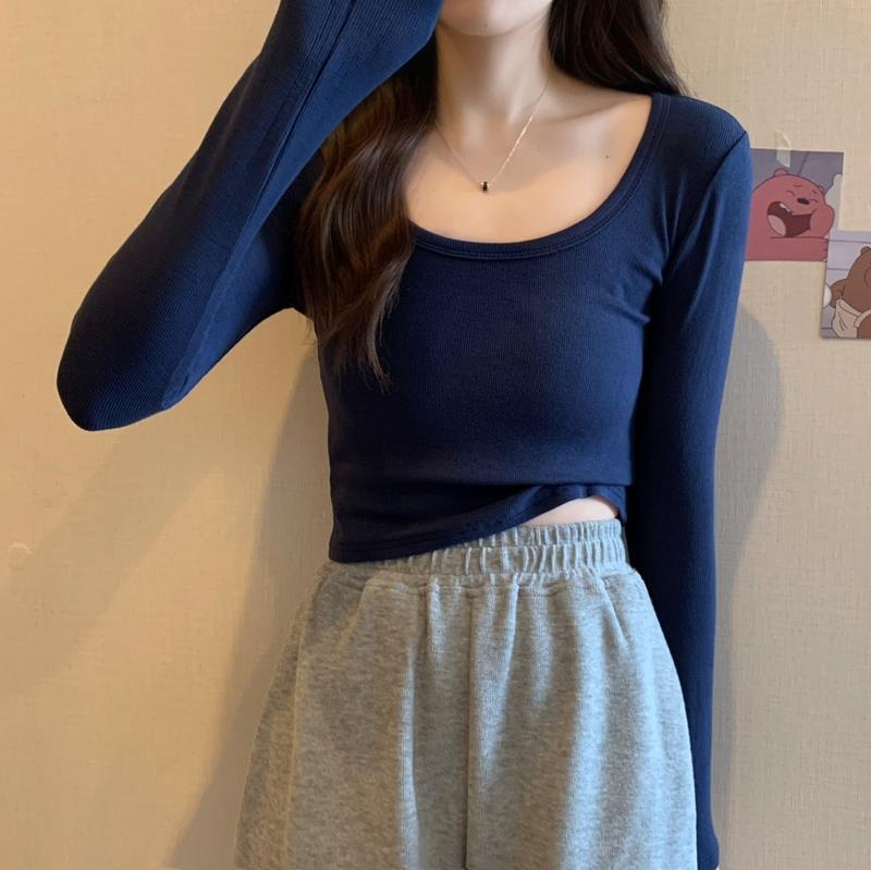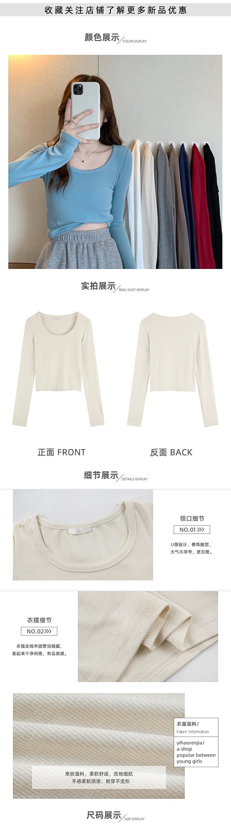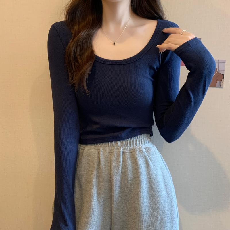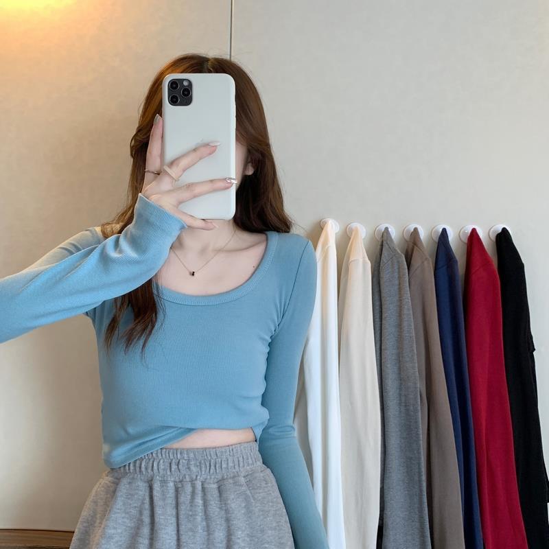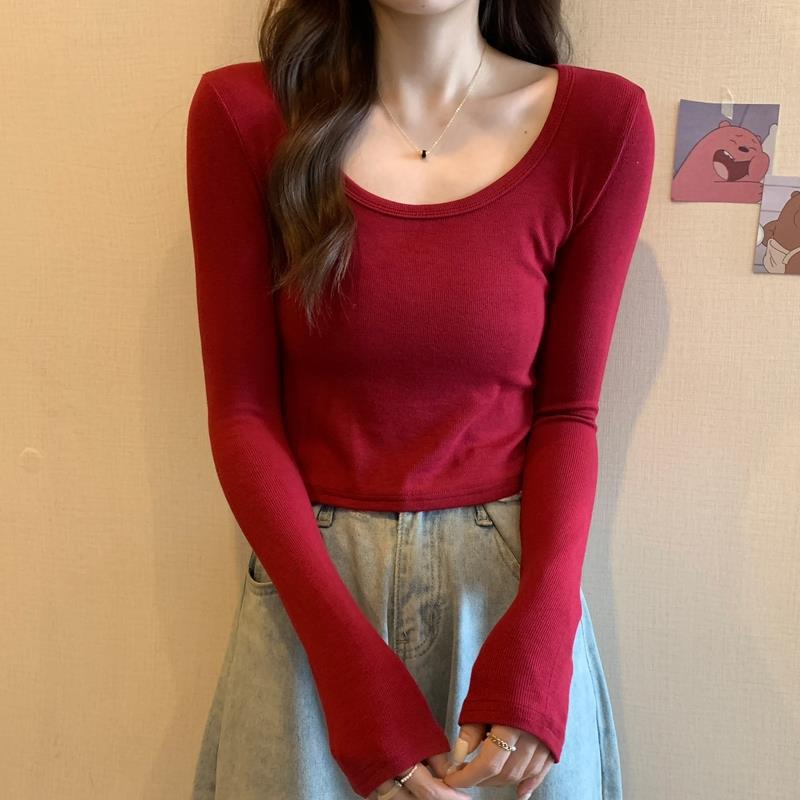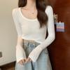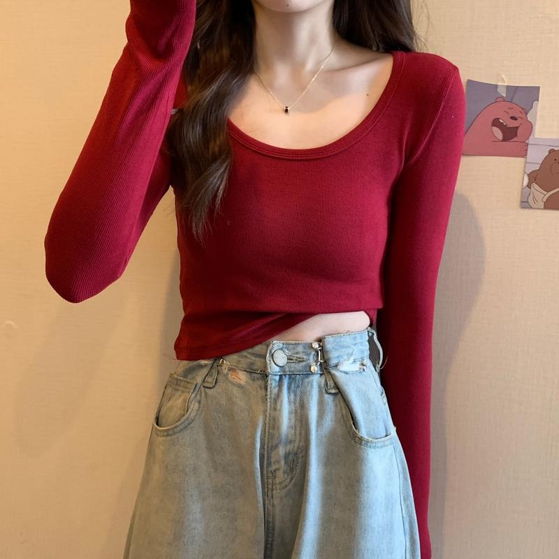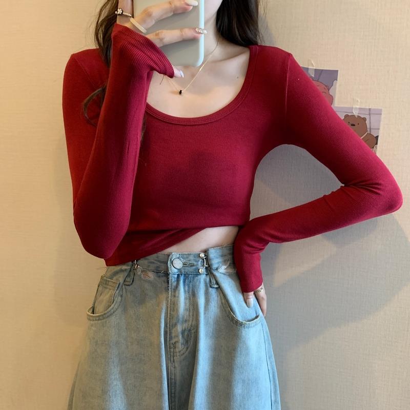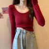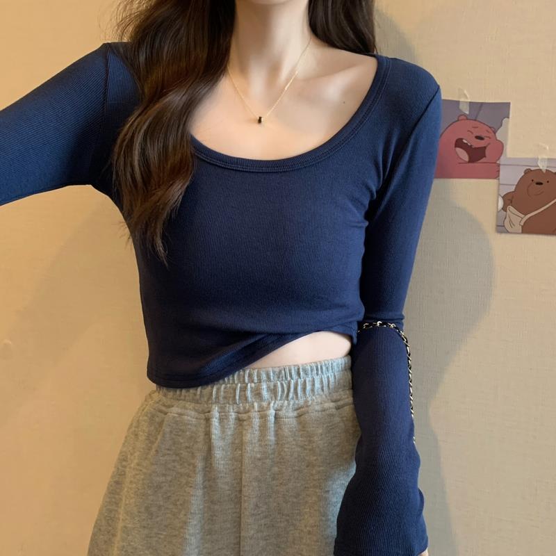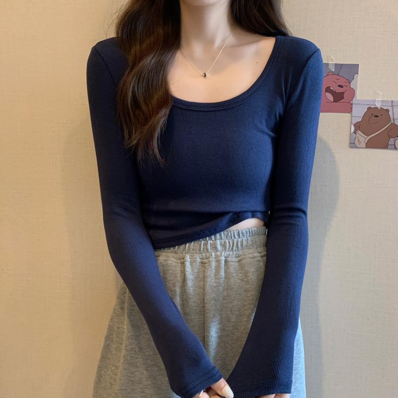 Camiseta blanca de manga larga para mujer, nueva camiseta de otoño, diseño de nicho, cuello en U, corte entallado, camiseta interior básica.