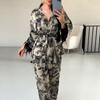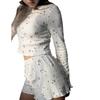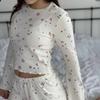 2025 Otoño Caliente Europeo y Americano Nuevo Casual Cuello Redondo Tejido Manga Larga Shorts Pijama Ropa de Casa Estampada para Mujer