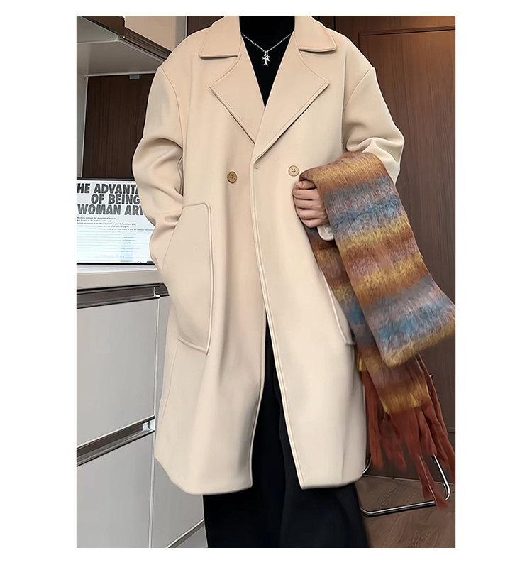 Otoño e Invierno Nuevo Abrigo de Lana de Largo Medio con Doble Botonadura Abrigo de Lana Holgado Abrigo de Lana Abrigo Gabardina