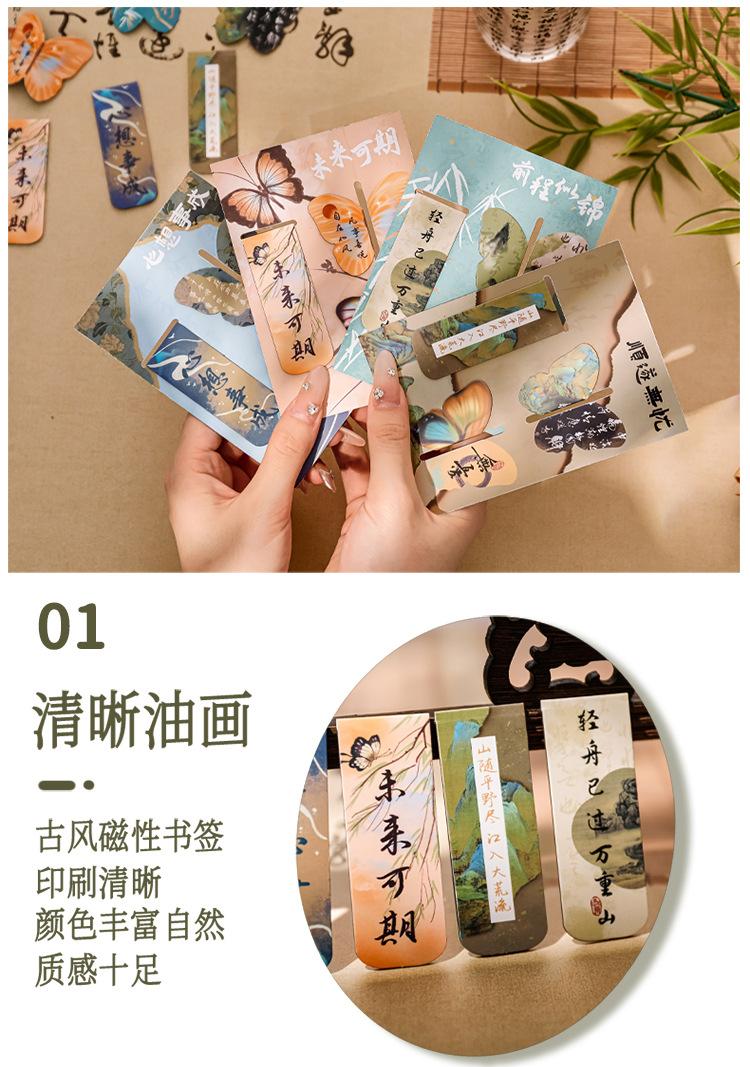 Marcapáginas magnético de estilo chino, bonito marcador de lectura para estudiantes, carpeta de páginas de libros, papelería creativa, pequeño regalo