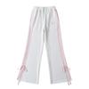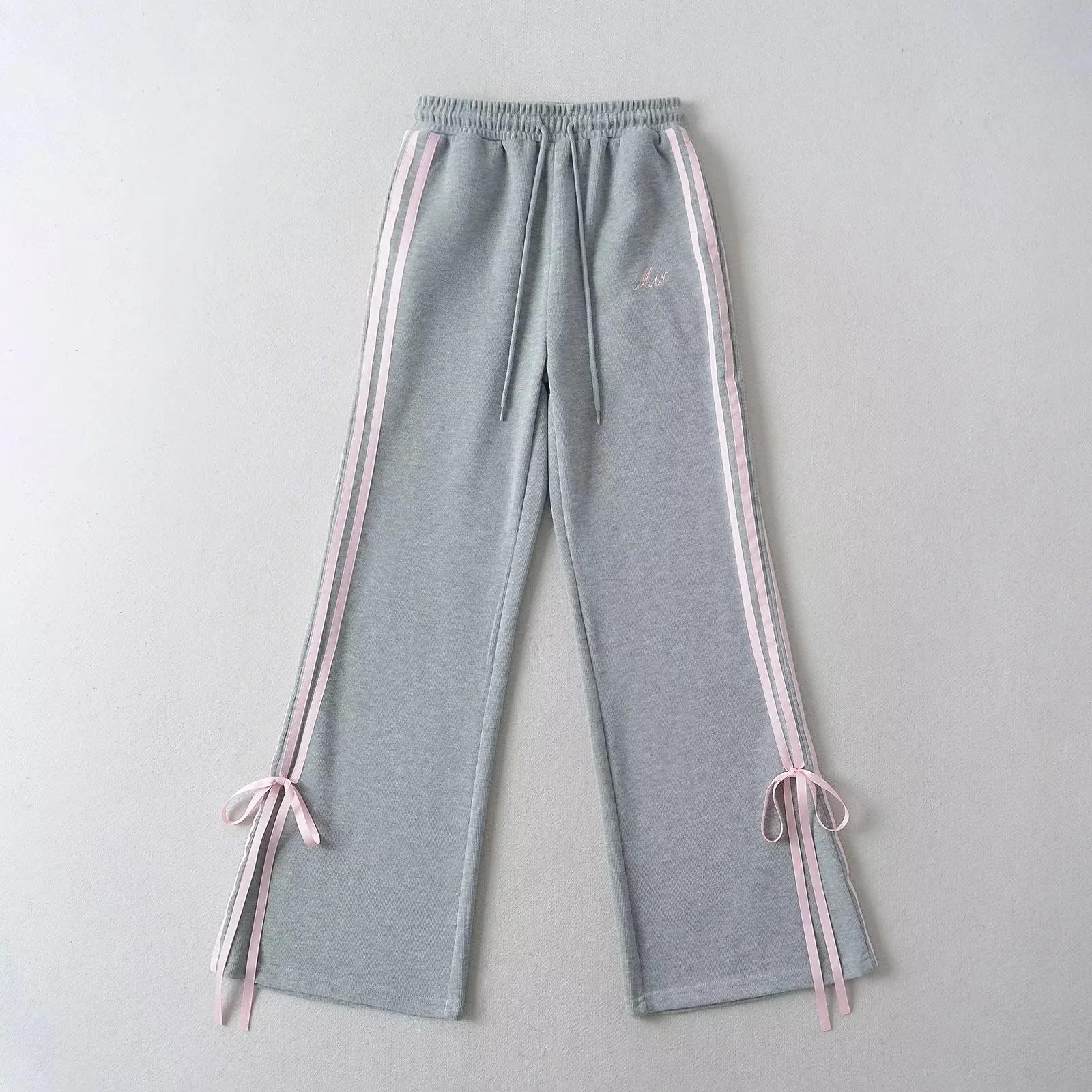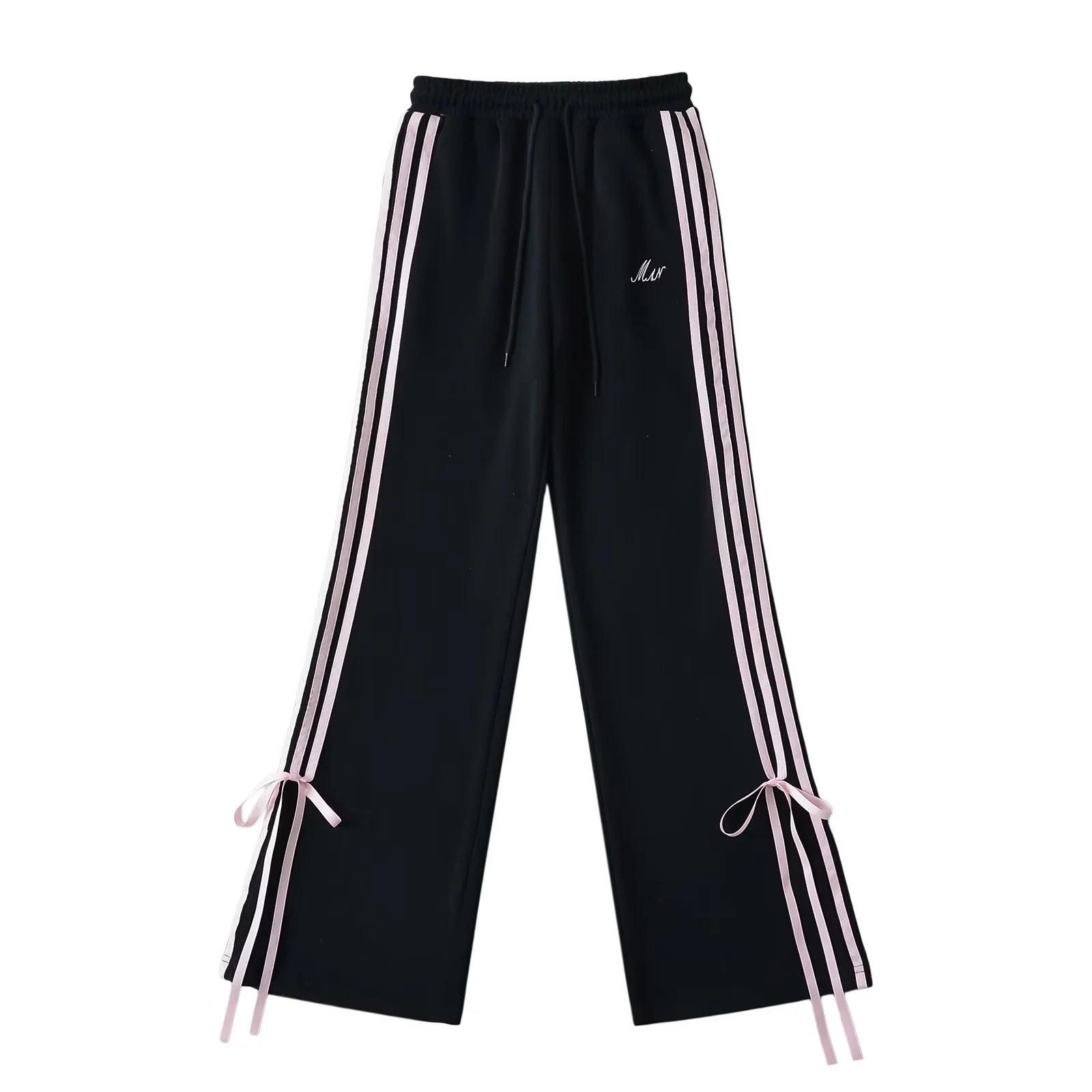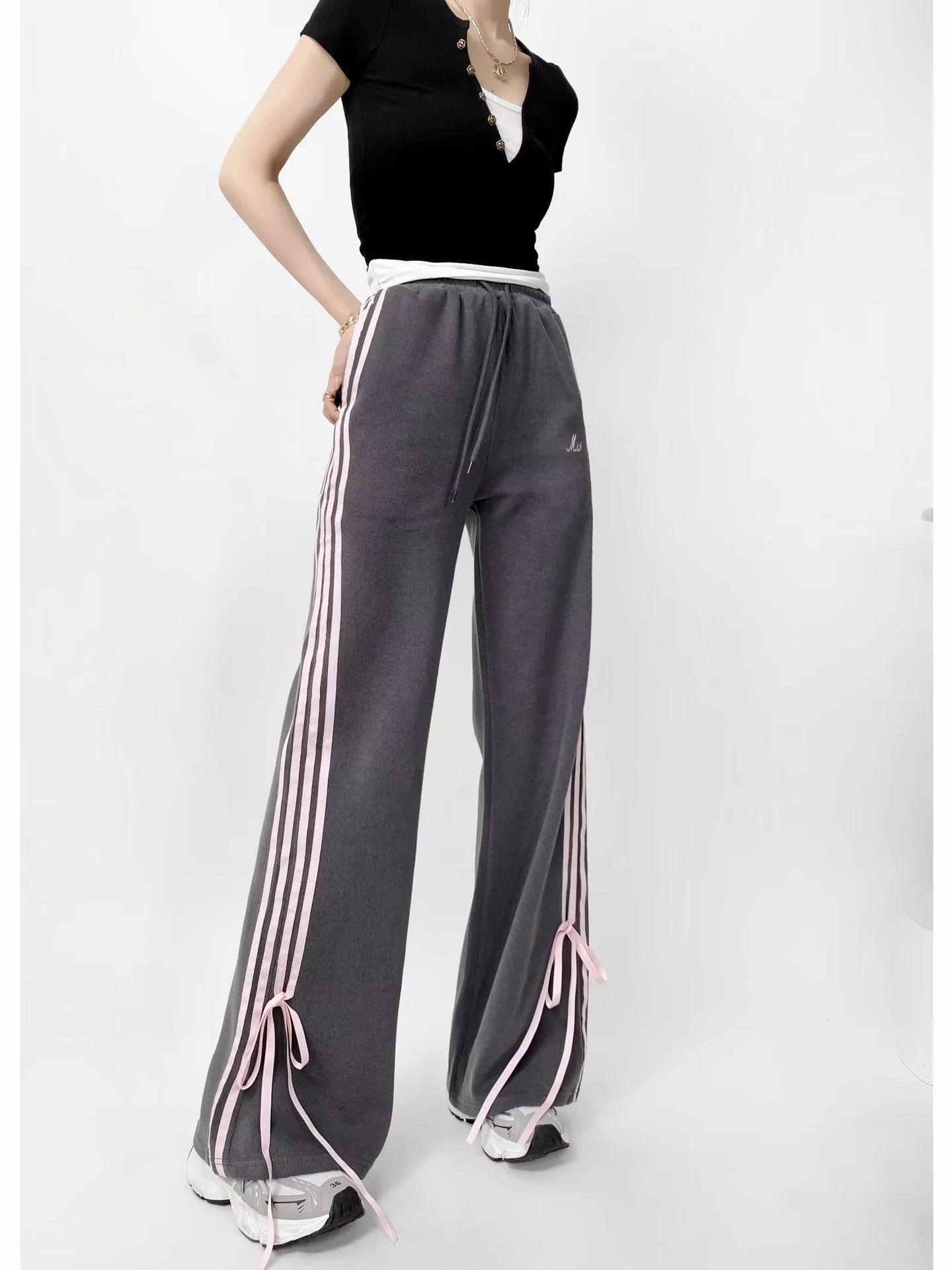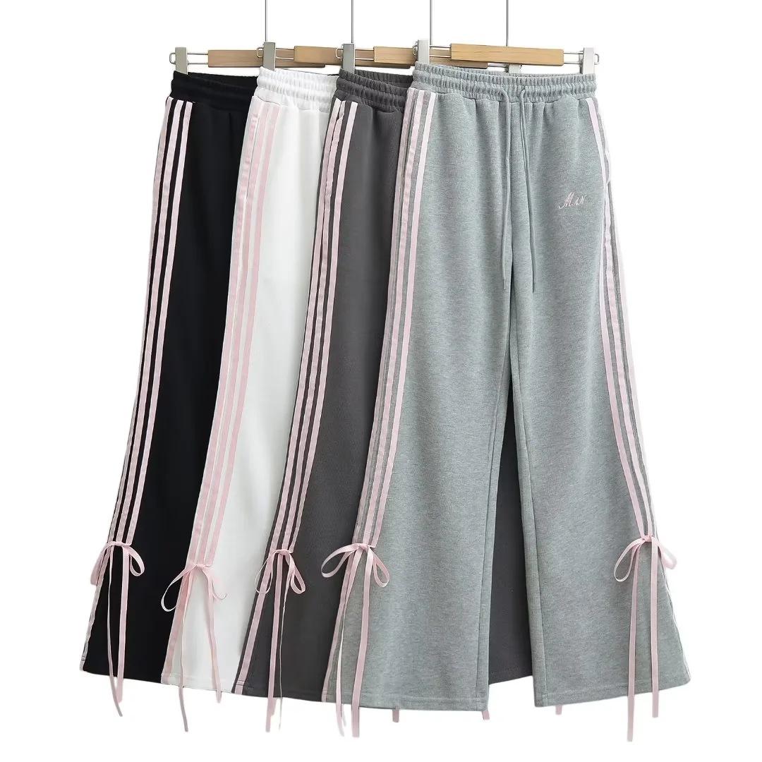 Pantalones deportivos frescos y dulces con lazo lateral para mujer, primavera y otoño 2024, nuevos pantalones casuales de cintura alta y pierna ancha, pantalones deportivos rectos sueltos