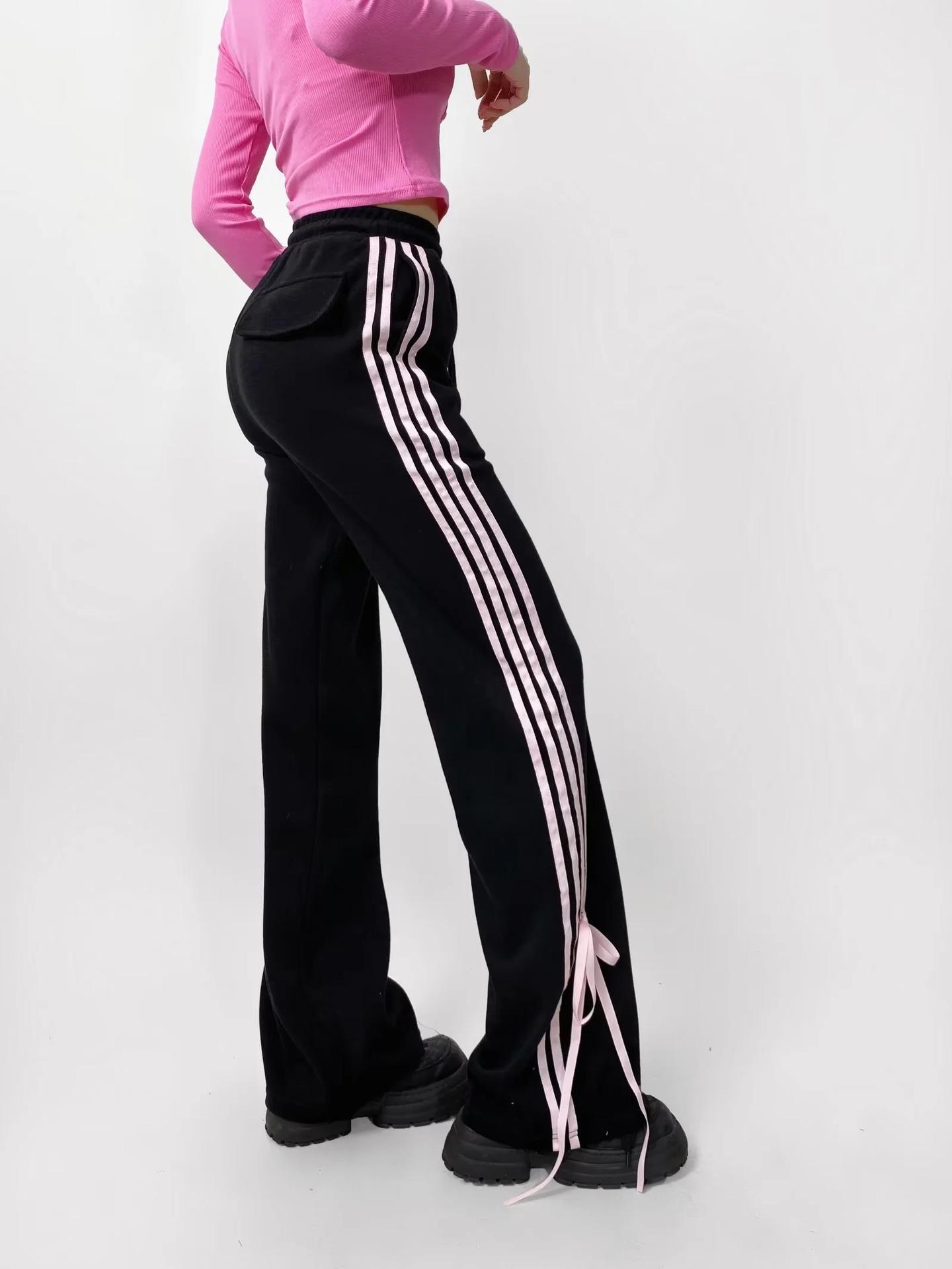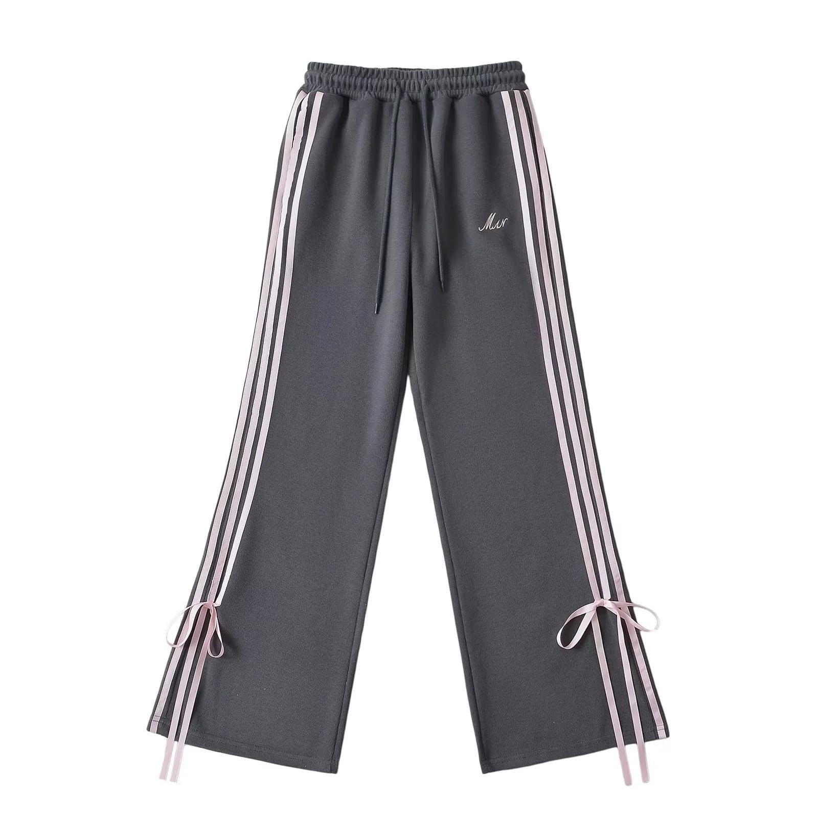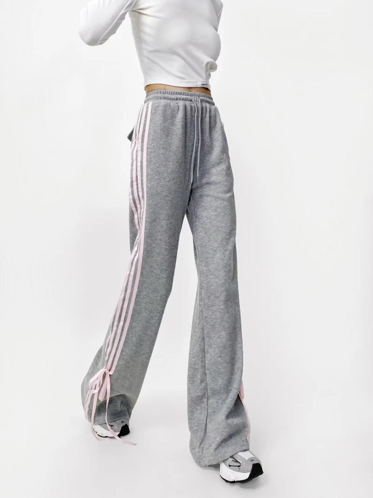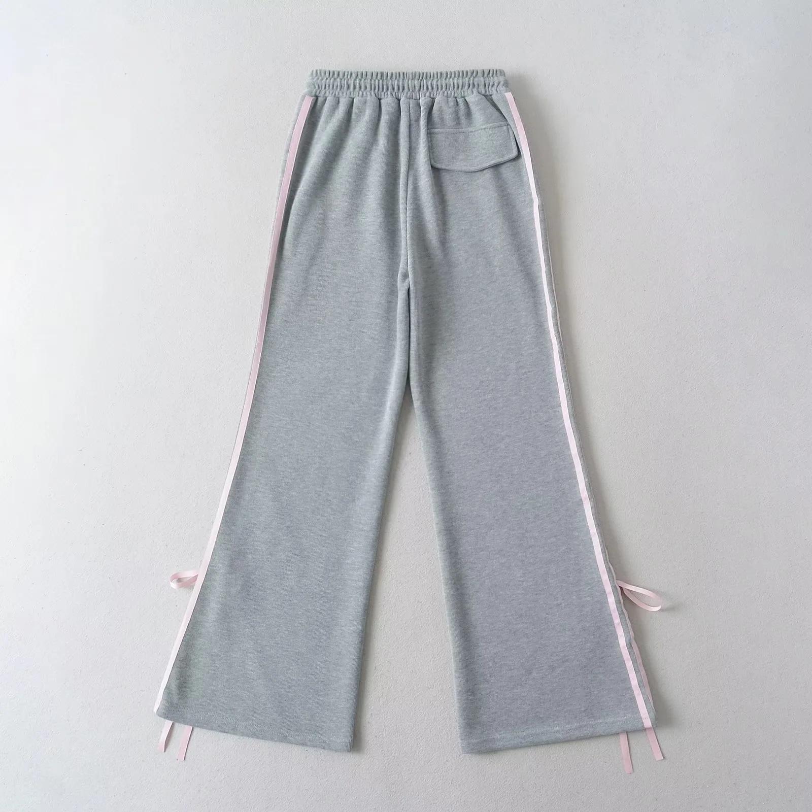 Pantalones deportivos frescos y dulces con lazo lateral para mujer, primavera y otoño 2024, nuevos pantalones casuales de cintura alta y pierna ancha, pantalones deportivos rectos sueltos