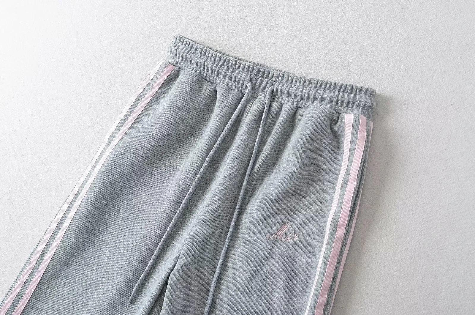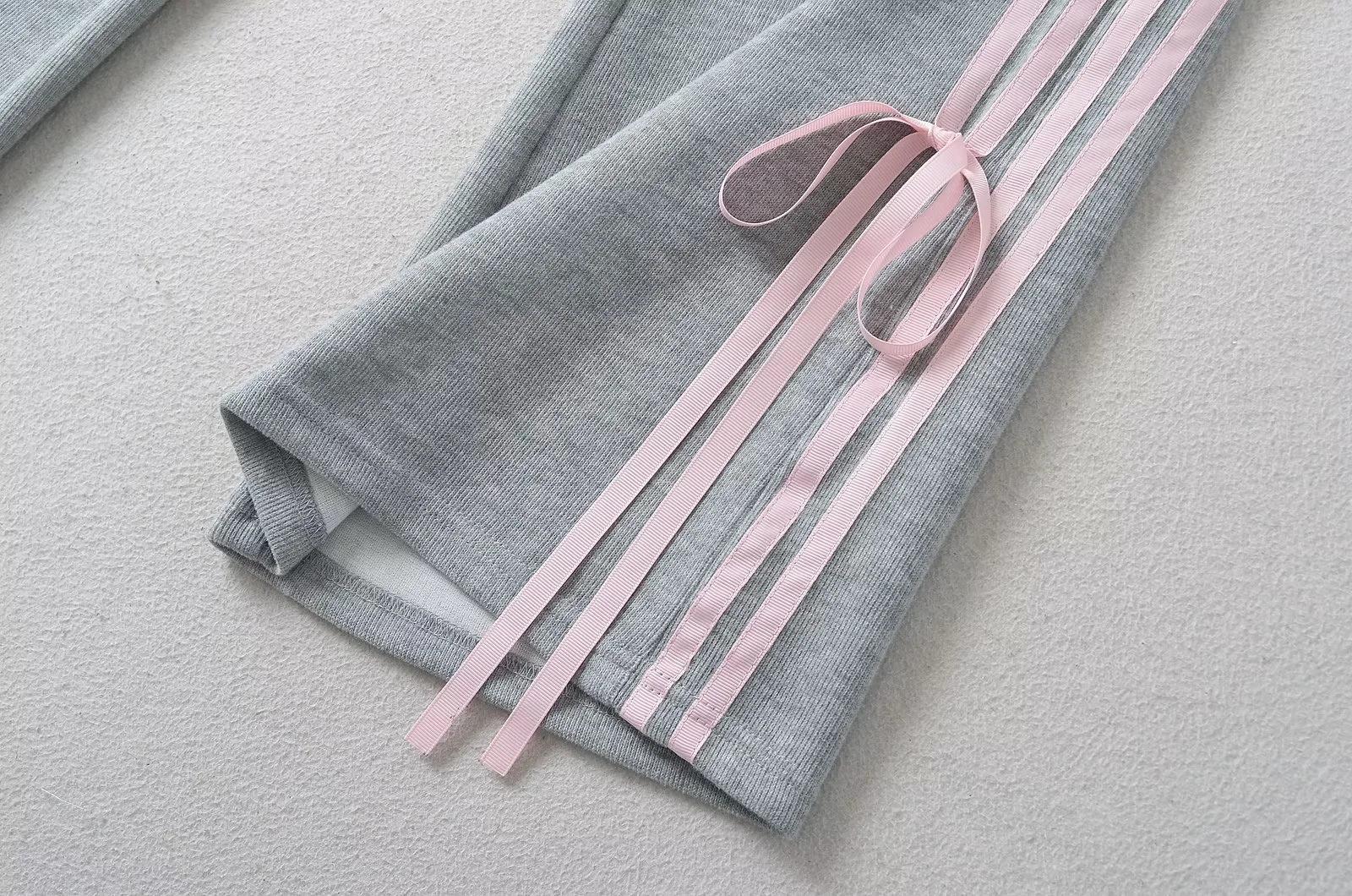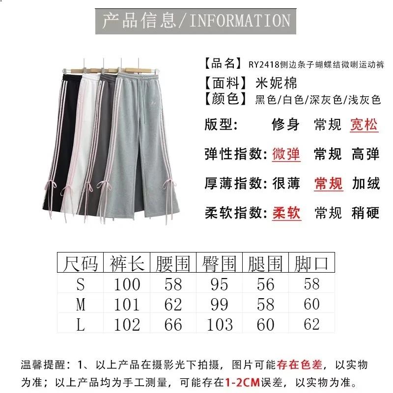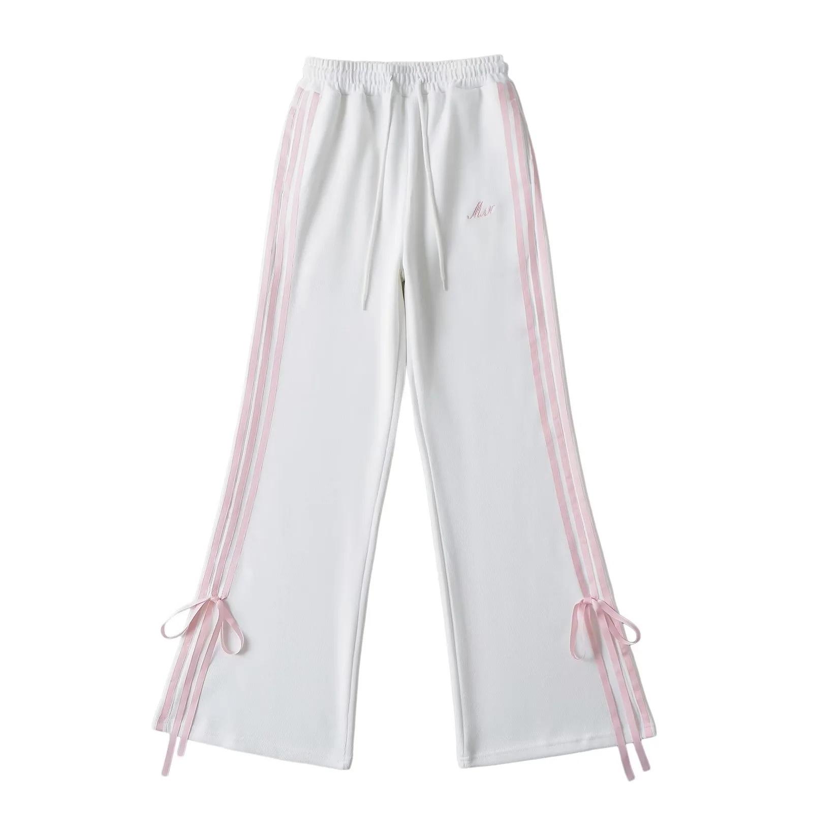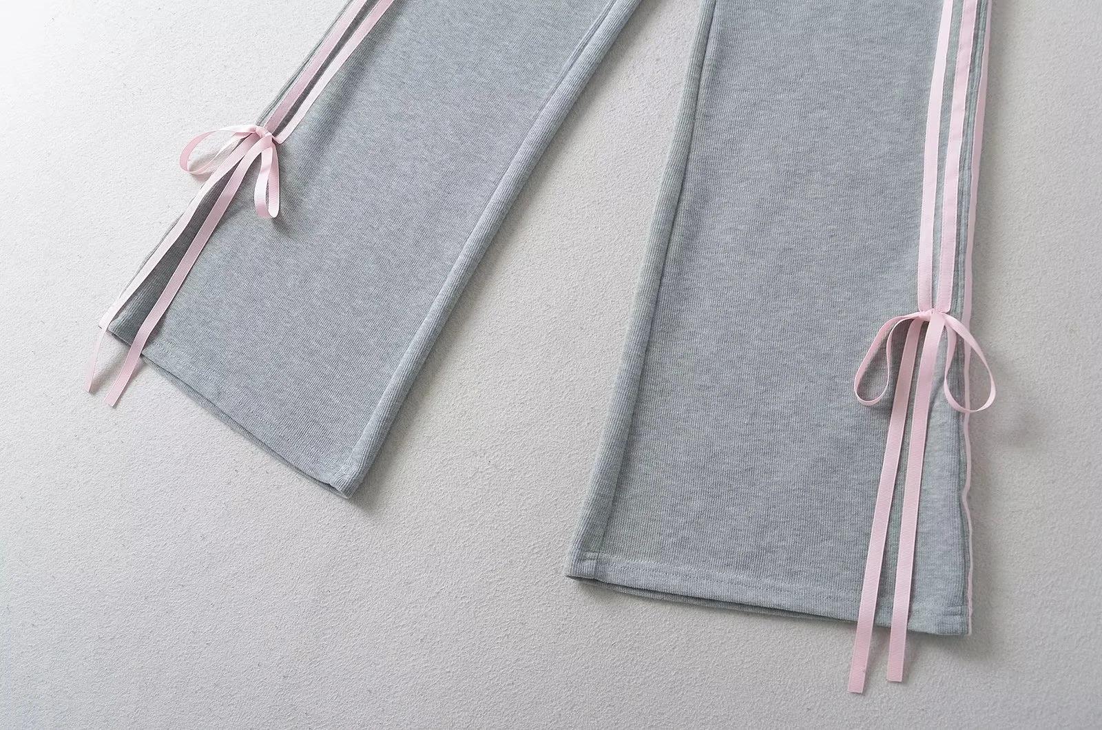 Pantalones deportivos frescos y dulces con lazo lateral para mujer, primavera y otoño 2024, nuevos pantalones casuales de cintura alta y pierna ancha, pantalones deportivos rectos sueltos