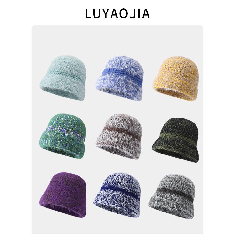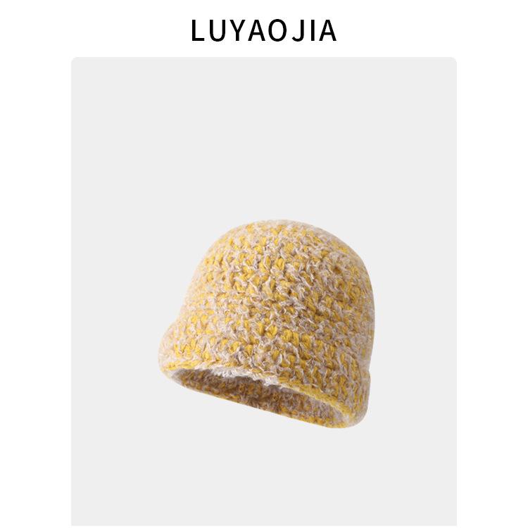 Gorro de punto cálido de felpa simple y combinable para celebridad de internet para mujer 2023 otoño e invierno Nuevo gorro para el frío con protección para las orejas, gorro de lana pequeño que hace que la cara se vea pequeña