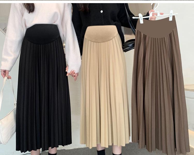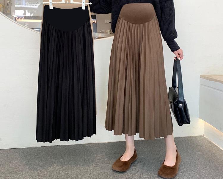 Falda para mujeres embarazadas Primavera y Otoño Nuevo estilo coreano falda plisada de punto de largo medio de moda falda A de línea con soporte para el vientre de mujeres embarazadas