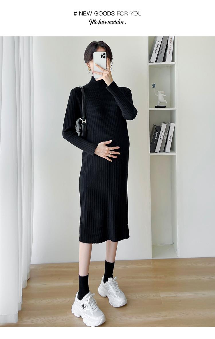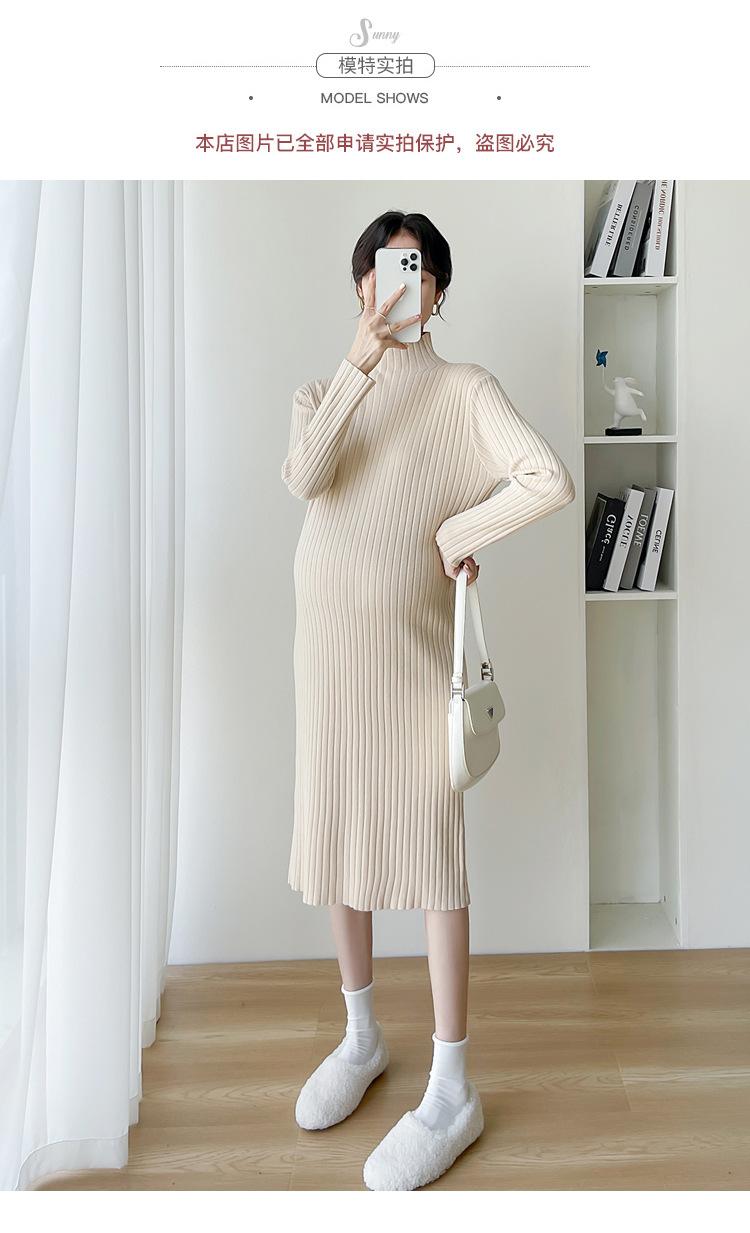 Ropa de mujer embarazada otoño e invierno nueva moda temperamento suéter camisa base delgada manga larga vestido largo de mujer embarazada
