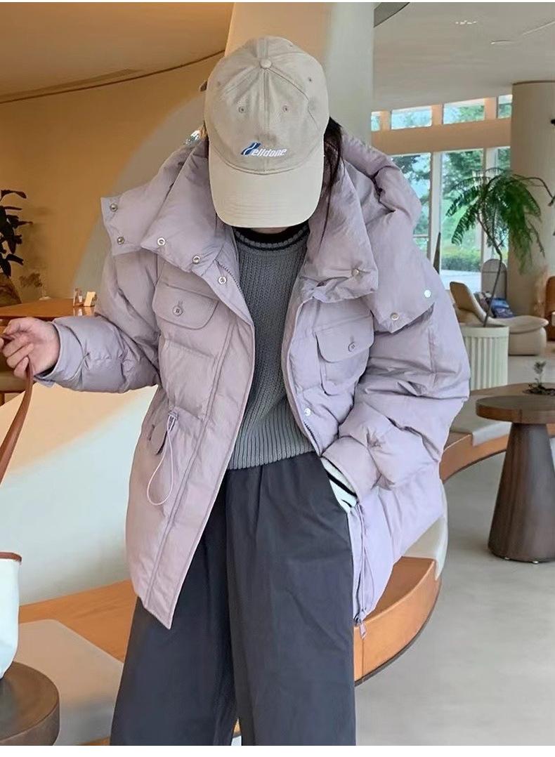 Chaqueta de plumón de pato blanco de longitud media 2024 Invierno Nuevo Chaqueta de cintura con capucha Ins