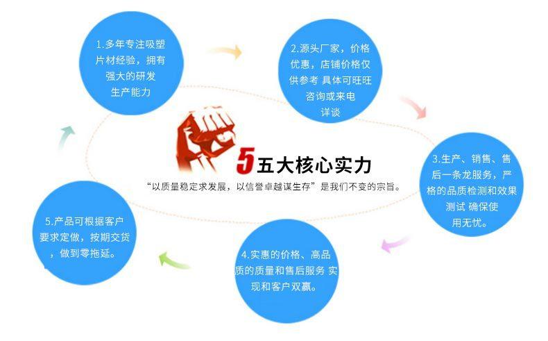 3. Espesor del producto convencional: 0,2 mm-0,8 mm. La línea de producción puede producir: 0,15-1,8 mm [se pueden personalizar especificaciones especiales].