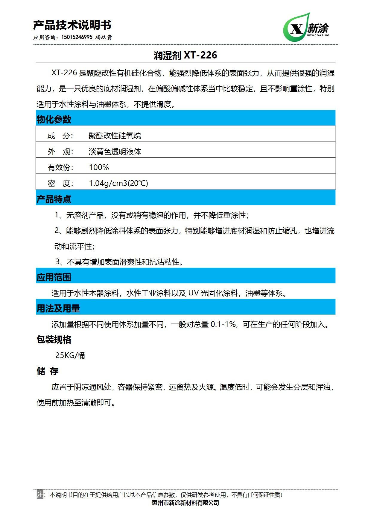 Agente humectante de base acuosa XT-226 silicona repintable agente antiencogimiento recubrimiento para madera tinta sistema UV