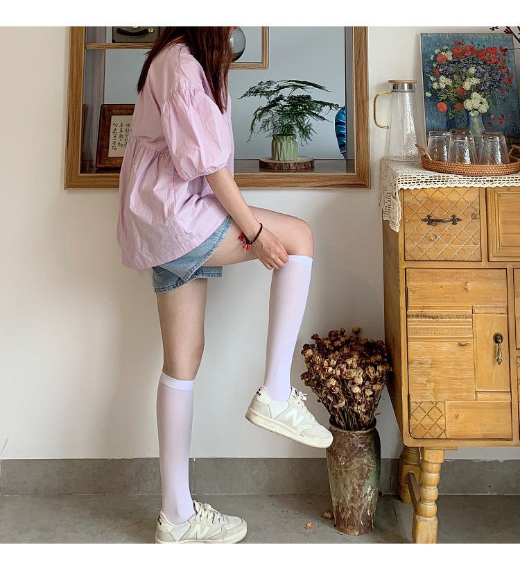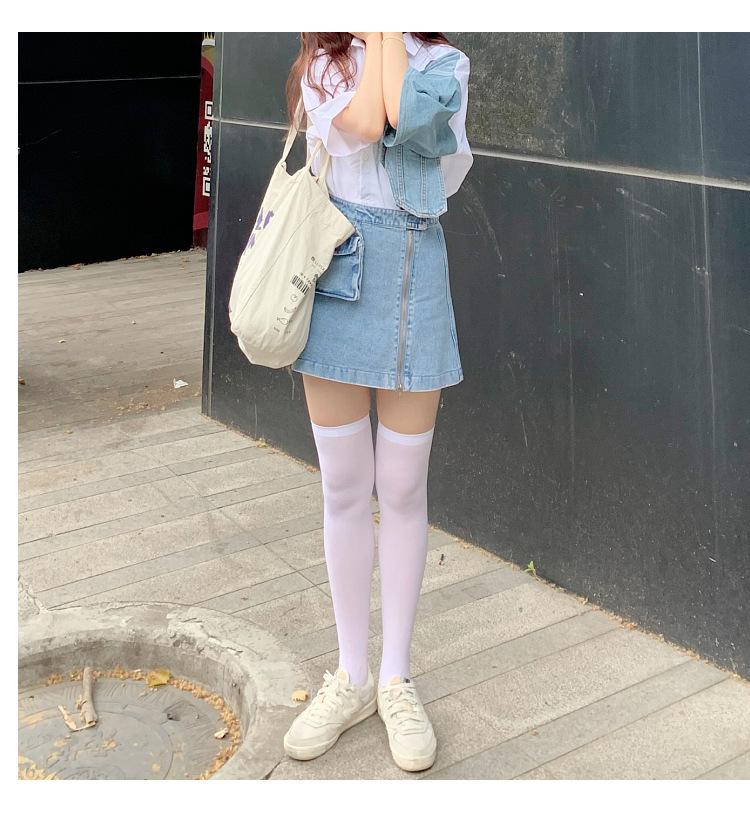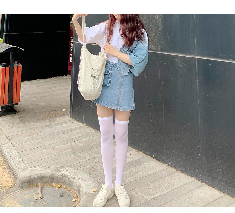 Calcetines largos hasta la rodilla de terciopelo blanco de media pantorrilla para uniforme jk japonés de primavera y verano, medias hasta la rodilla Harajuku