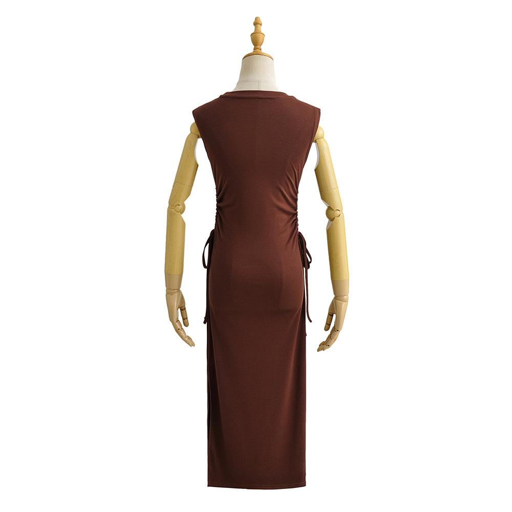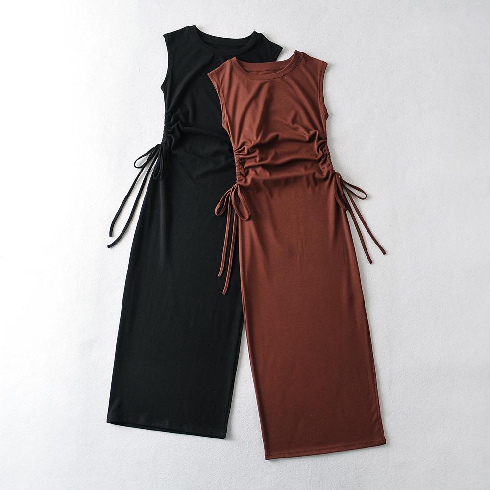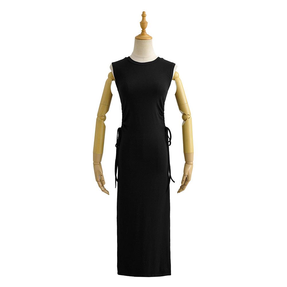 Xia Chun Desire - Vestido sexy europeo y americano sin mangas con cordón y cintura doble, vestido de cadera hueca, vestido largo ajustado