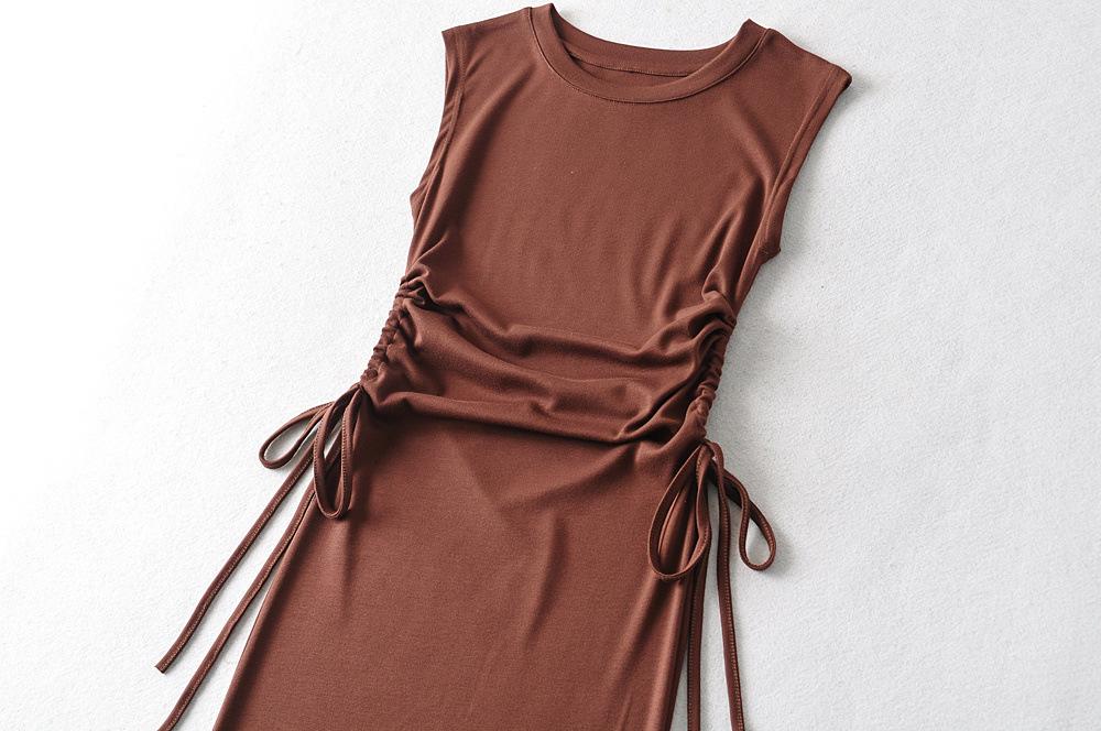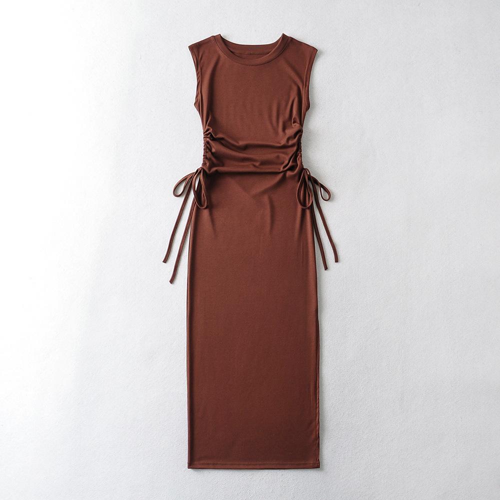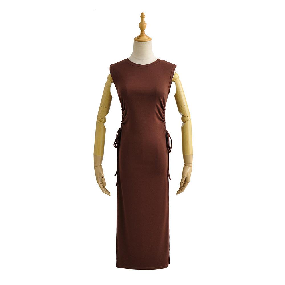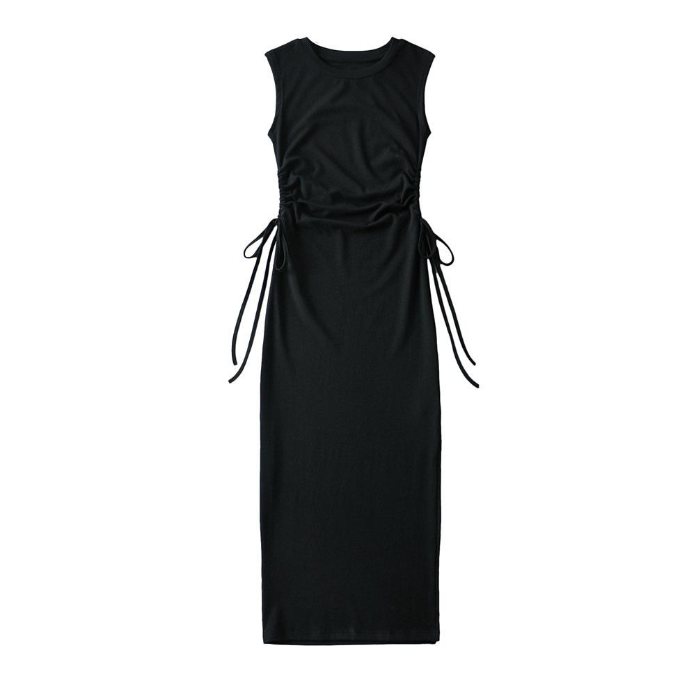 Xia Chun Desire - Vestido sexy europeo y americano sin mangas con cordón y cintura doble, vestido de cadera hueca, vestido largo ajustado