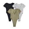 Pure Want 2023 - Mono sexy de manga corta con escote en V pequeño de Spice Girl, estilo europeo y americano, color sólido, ajustado y abierto