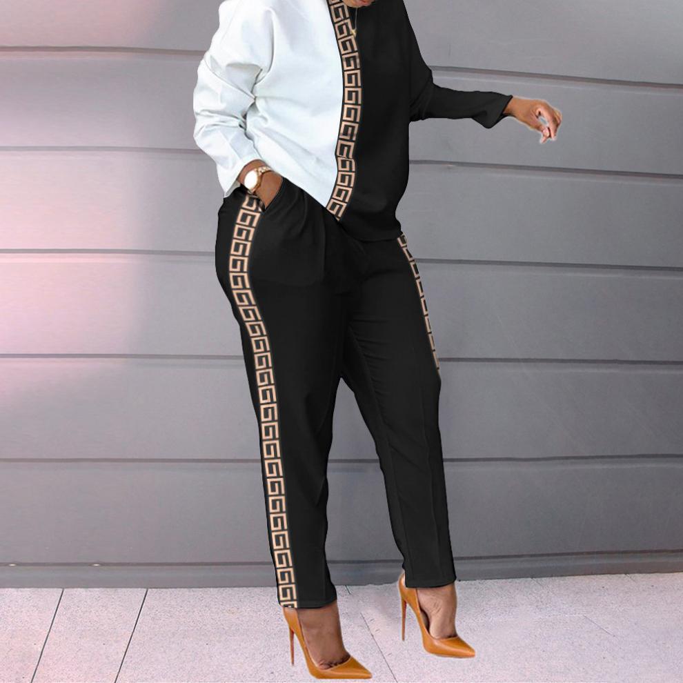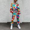Traje informal holgado de manga larga con estampado de colores en contraste de moda para mujer europea y americana de Amazon, otoño e invierno transfronterizos