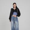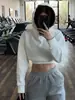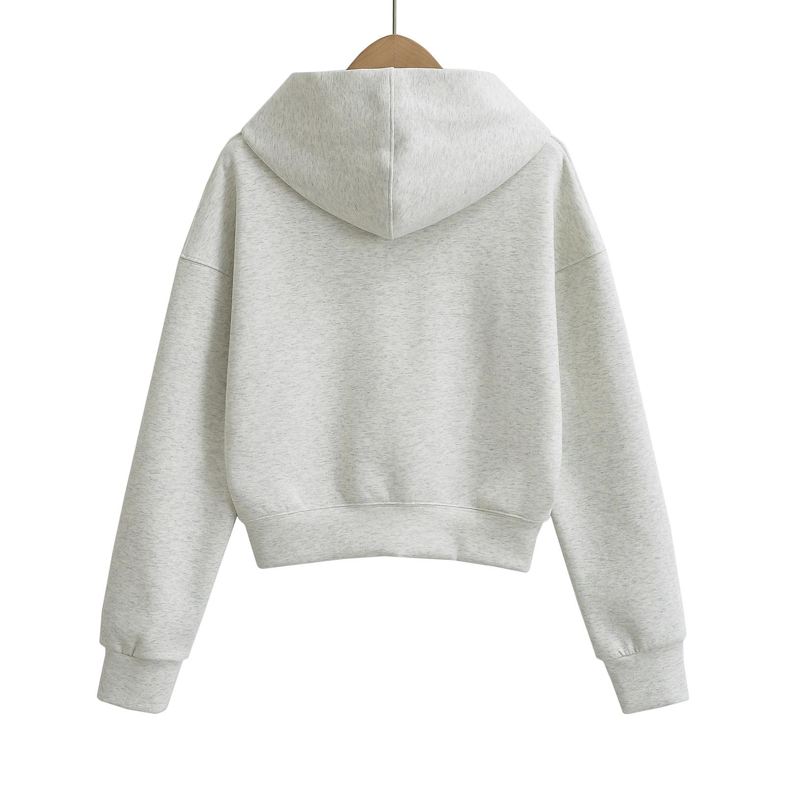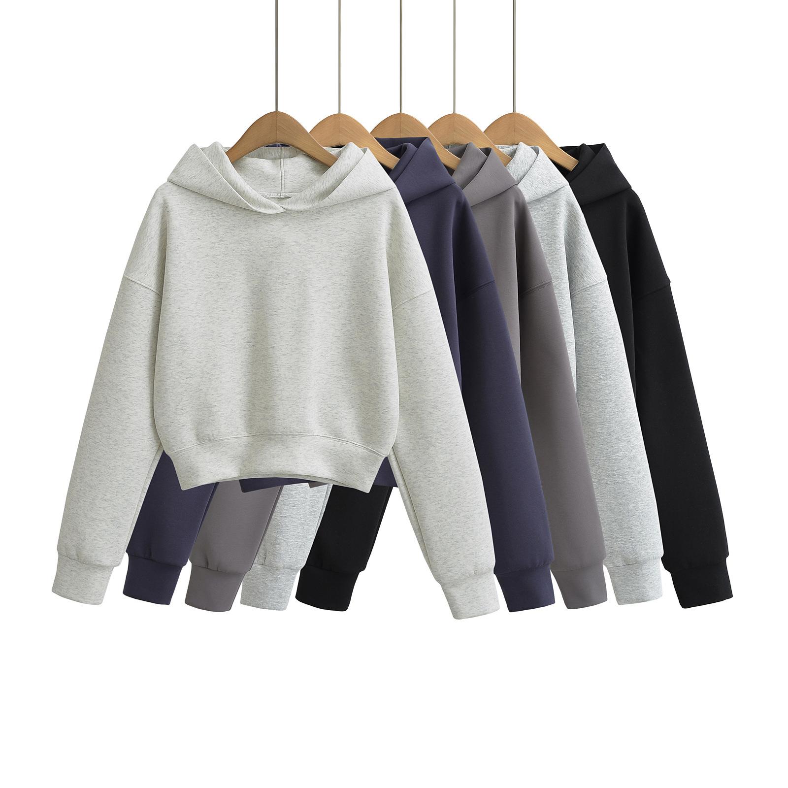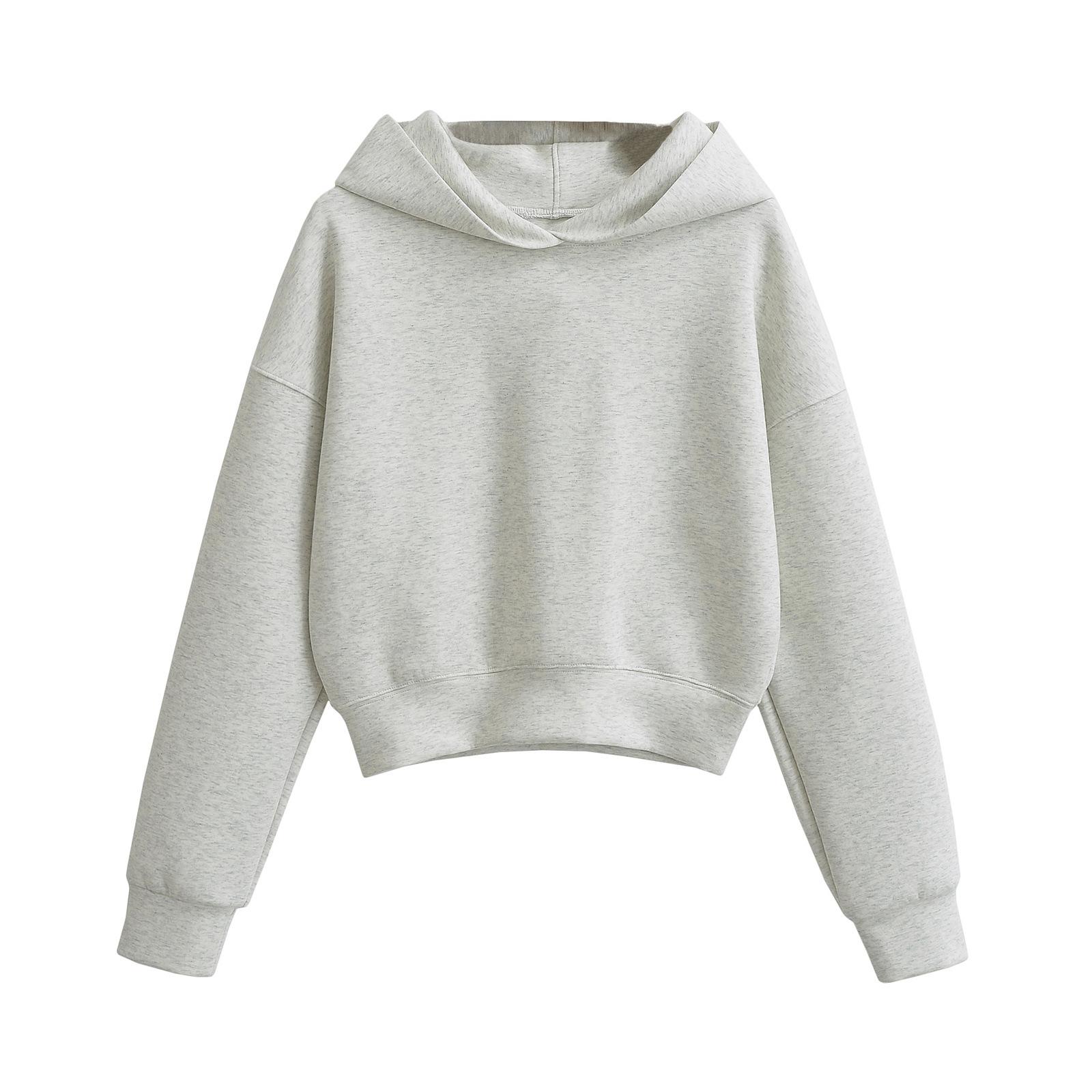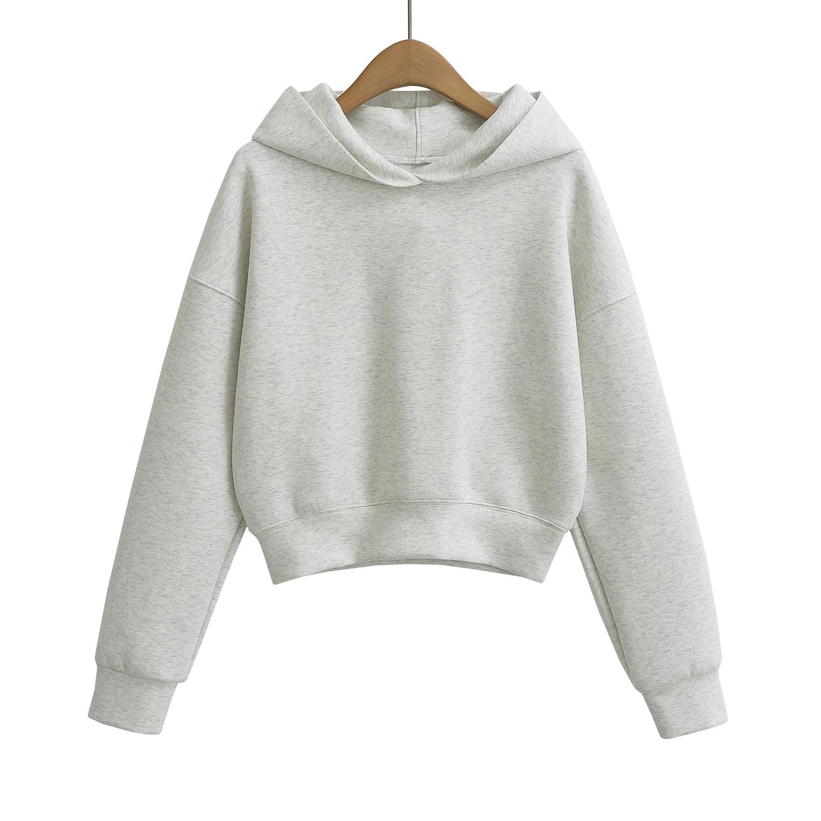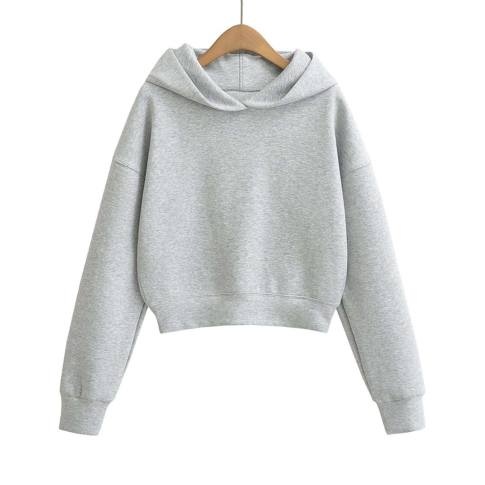 Sudadera con capucha de manga corta y larga para chica, estilo americano, estilo retro, simple, con capas de aire, color sólido