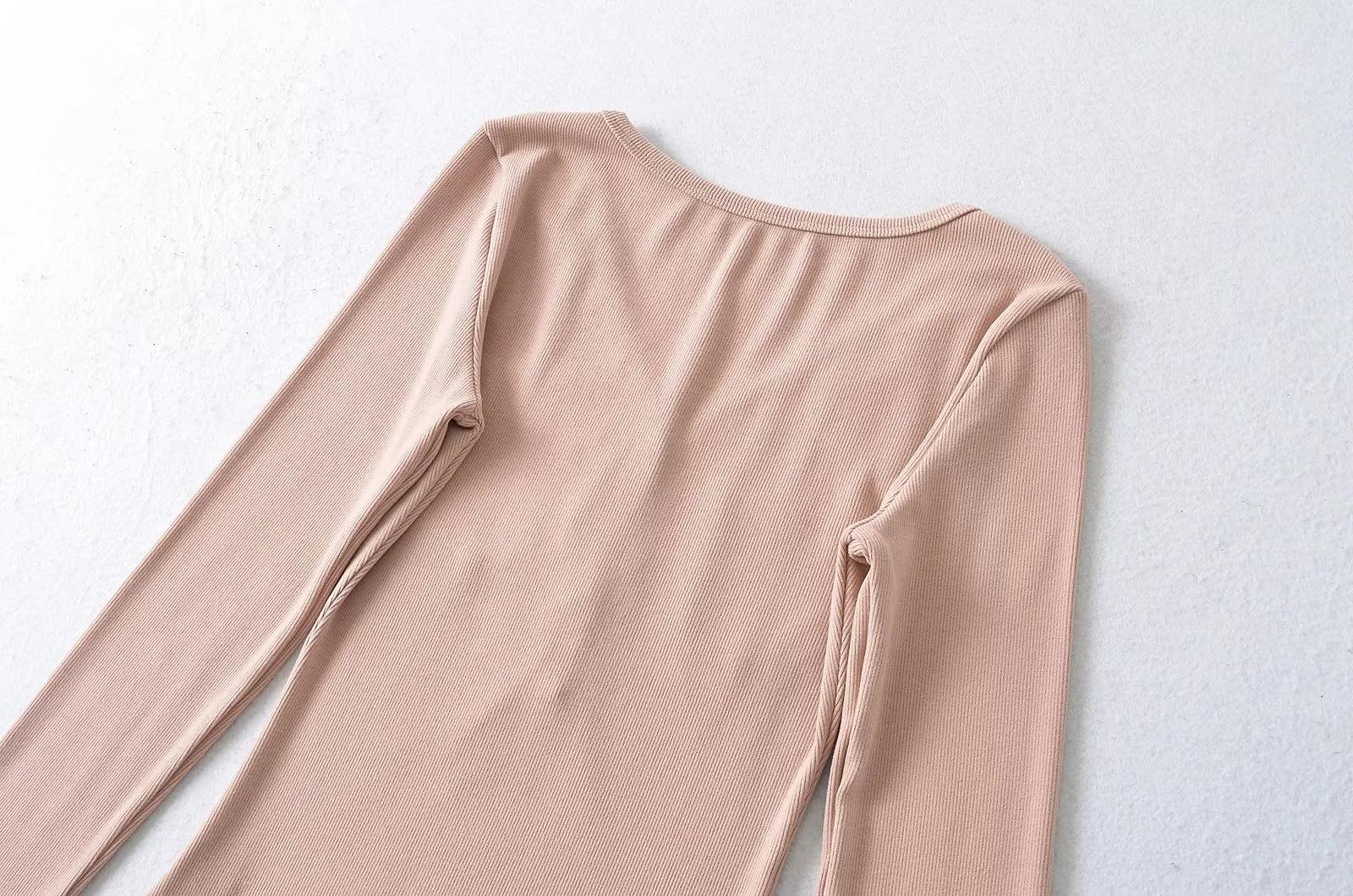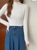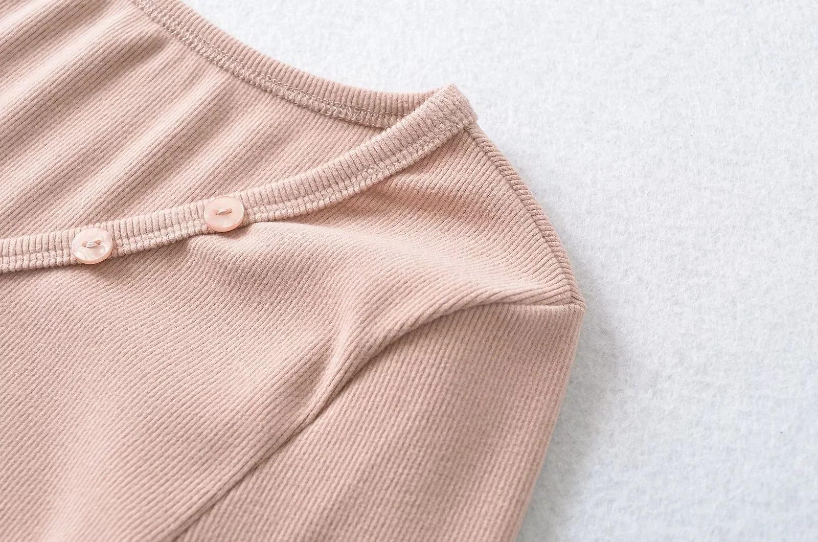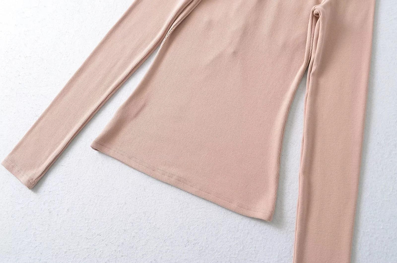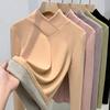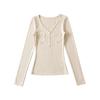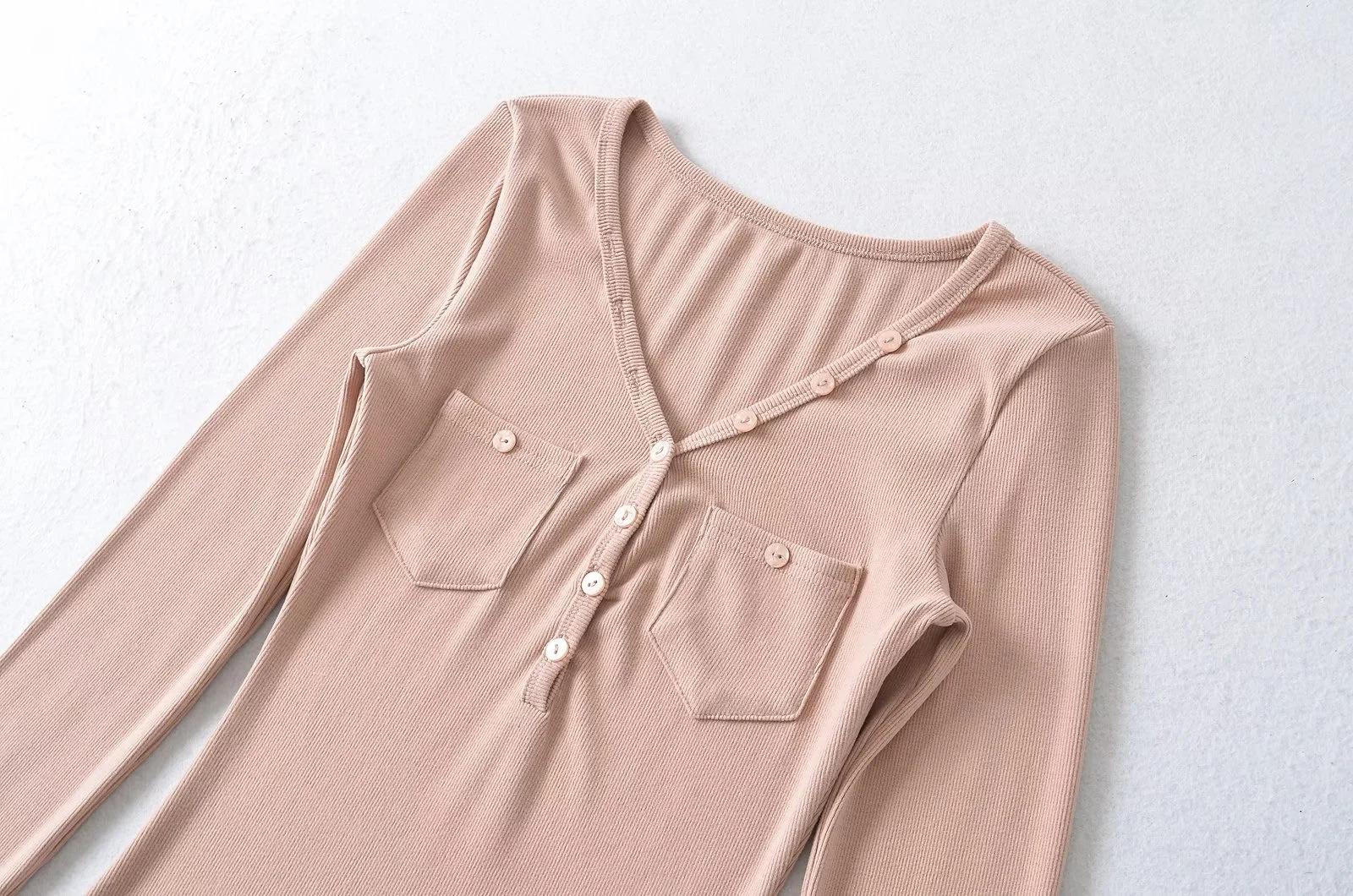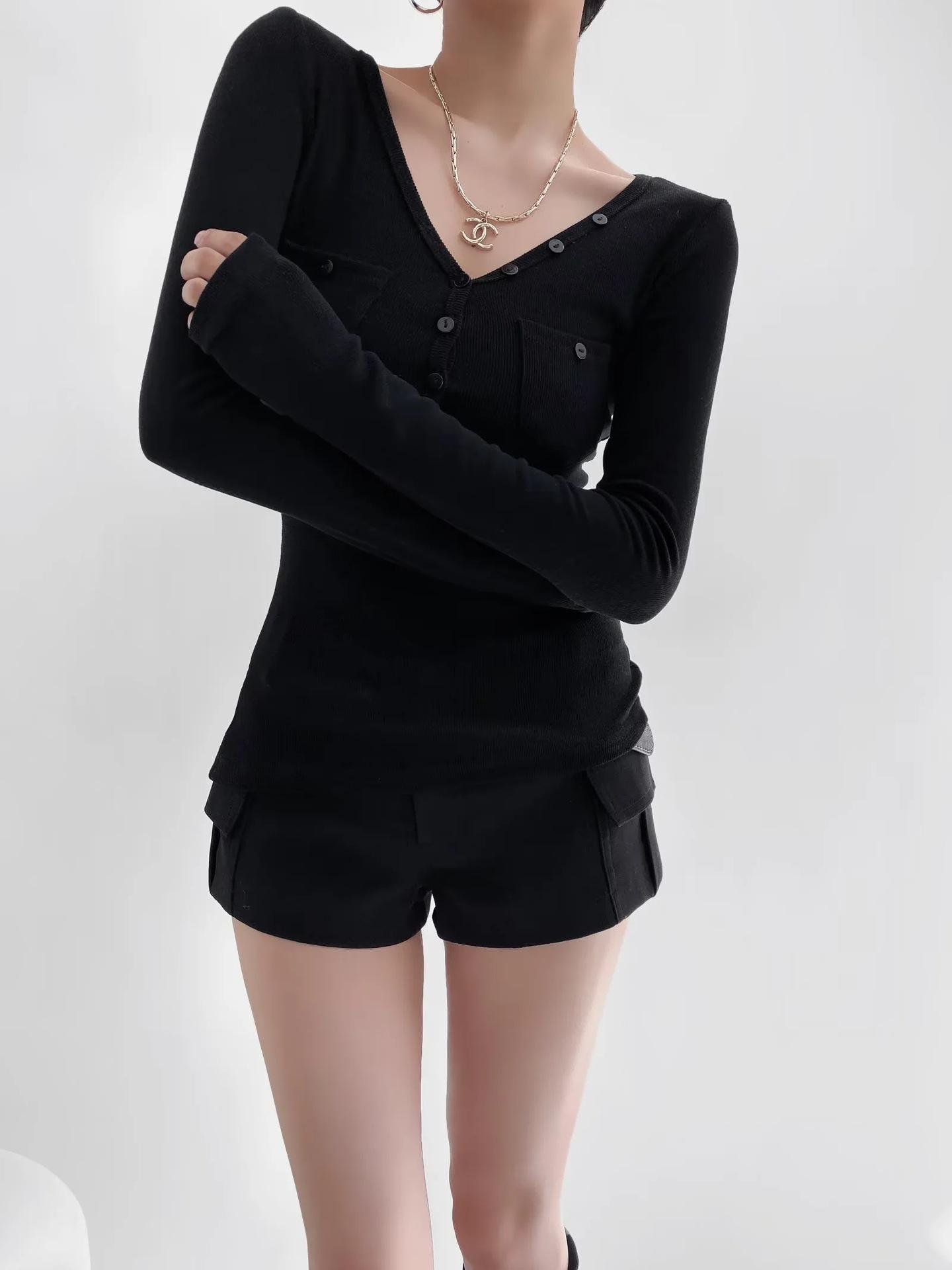 Camisa de punto con base decorativa y bolsillo Spice Girl para mujer, otoño 2024, cuello grande, manga larga interior