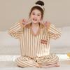 Pijamas para Niñas Primavera y Otoño 2025 Nuevo Cuello Reverso Niños Manga Larga Niños Medianos y Grandes Niñas Cuadros y Transpirable Ropa para el Hogar