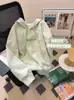 Suéter de moda europea y americana 2023, cárdigan holgado con capucha y bordado de letras, abrigo corto informal para niñas