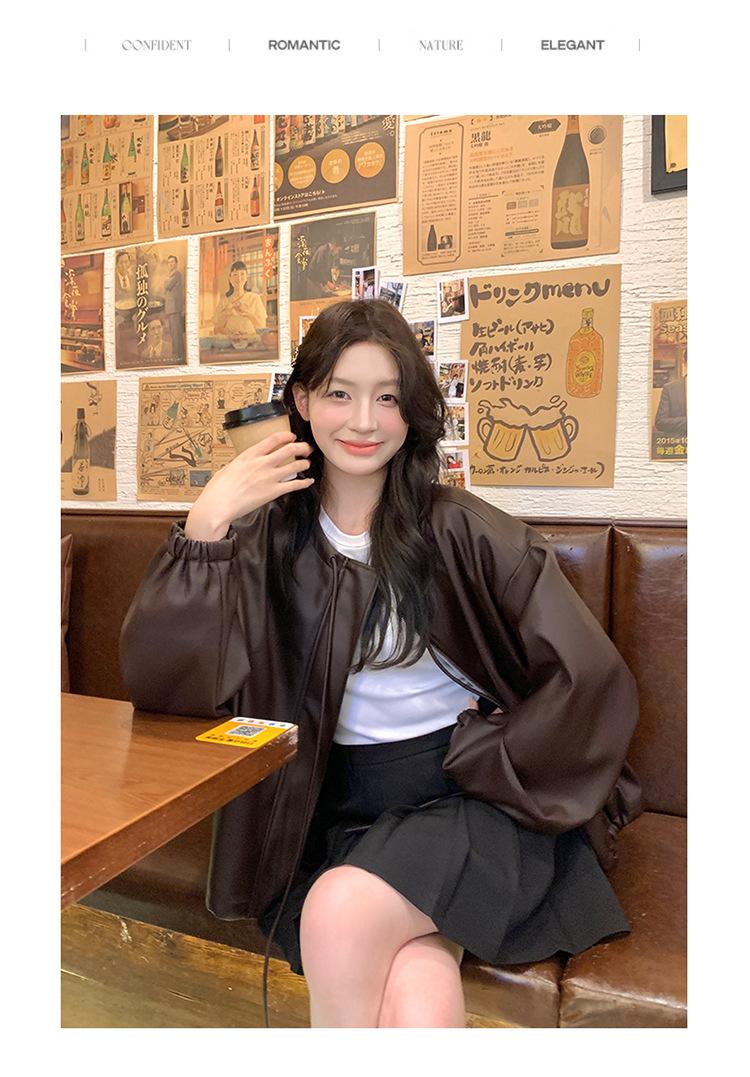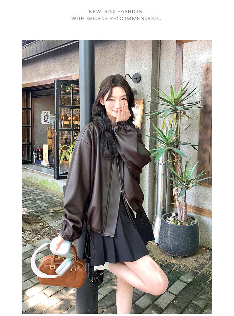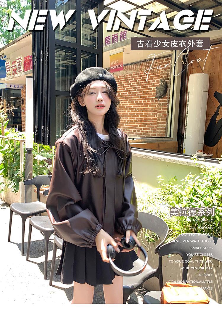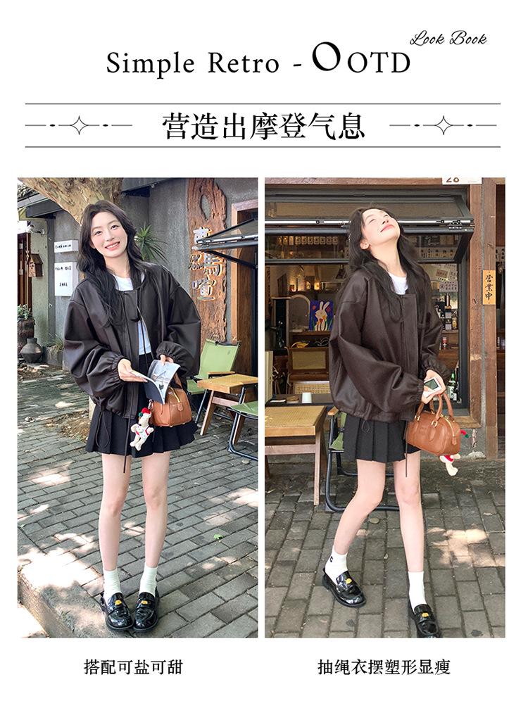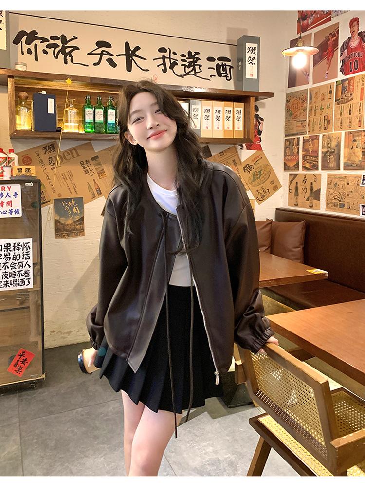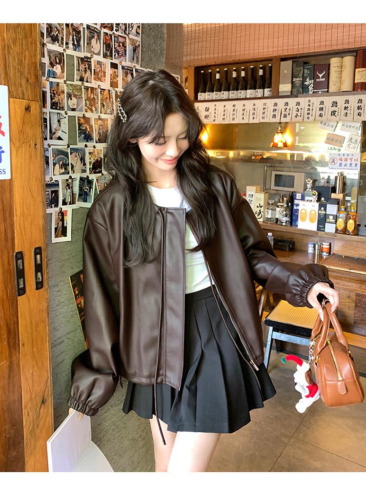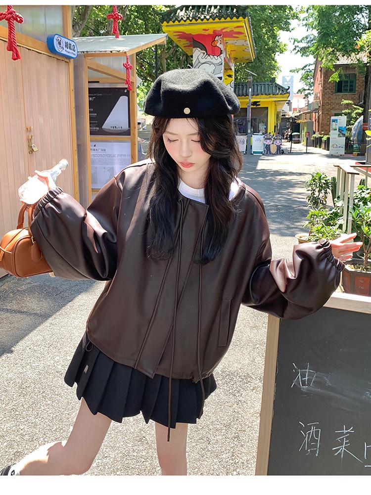Chaqueta de cuero sintético vintage Maillard para mujer, otoño 2024, nuevo estilo, chaqueta corta de cuero para mujer, estilo petite, antiedad, tops