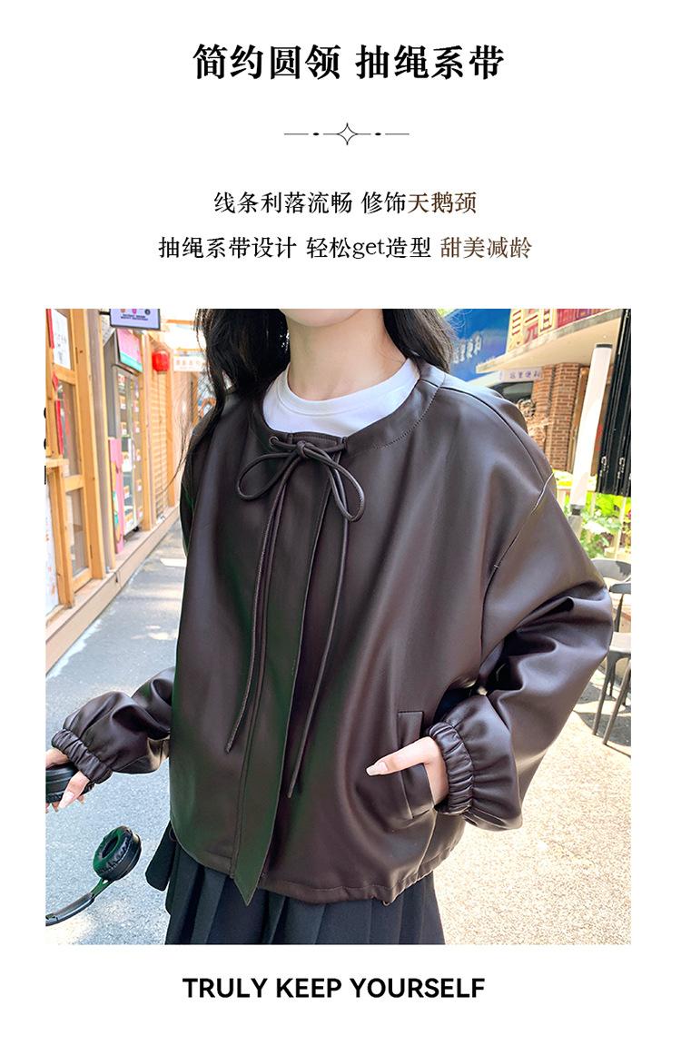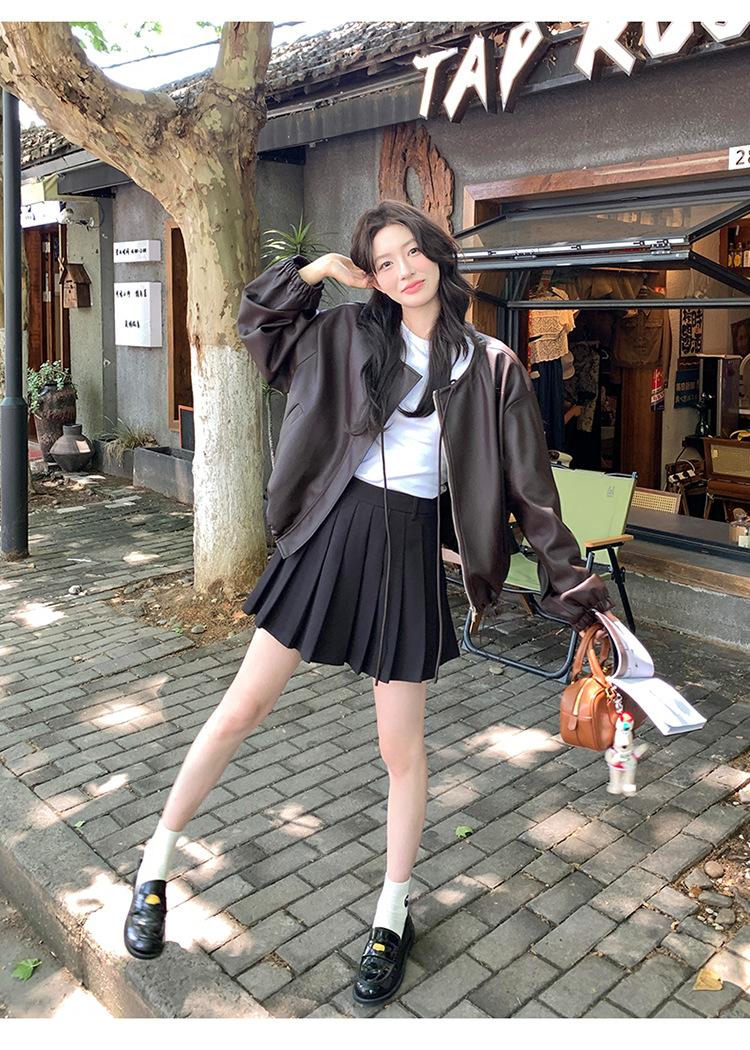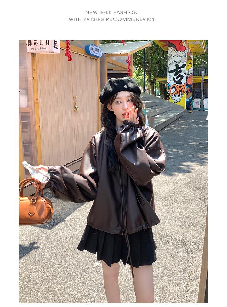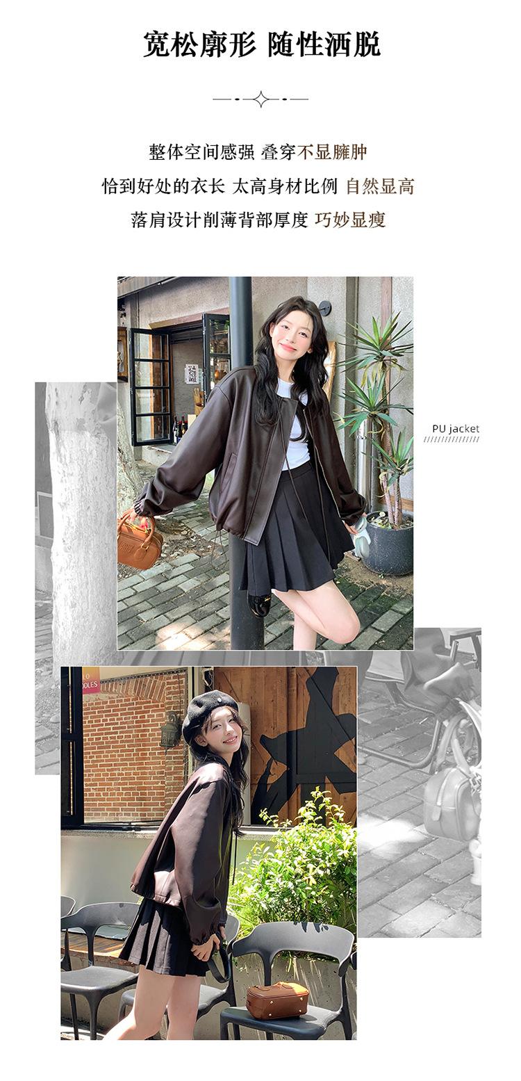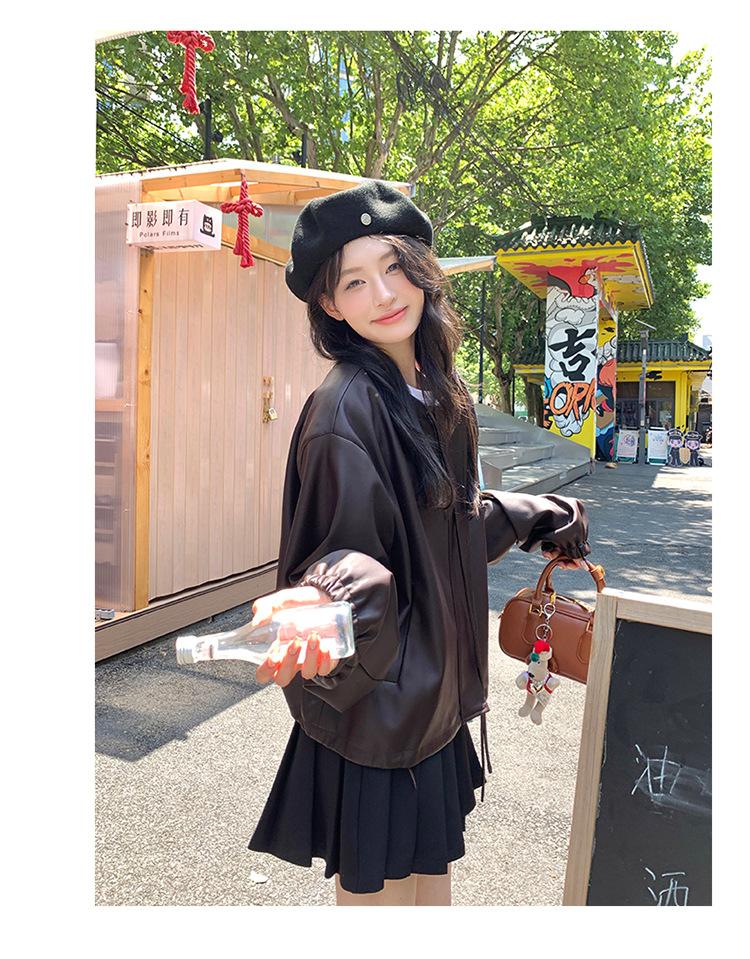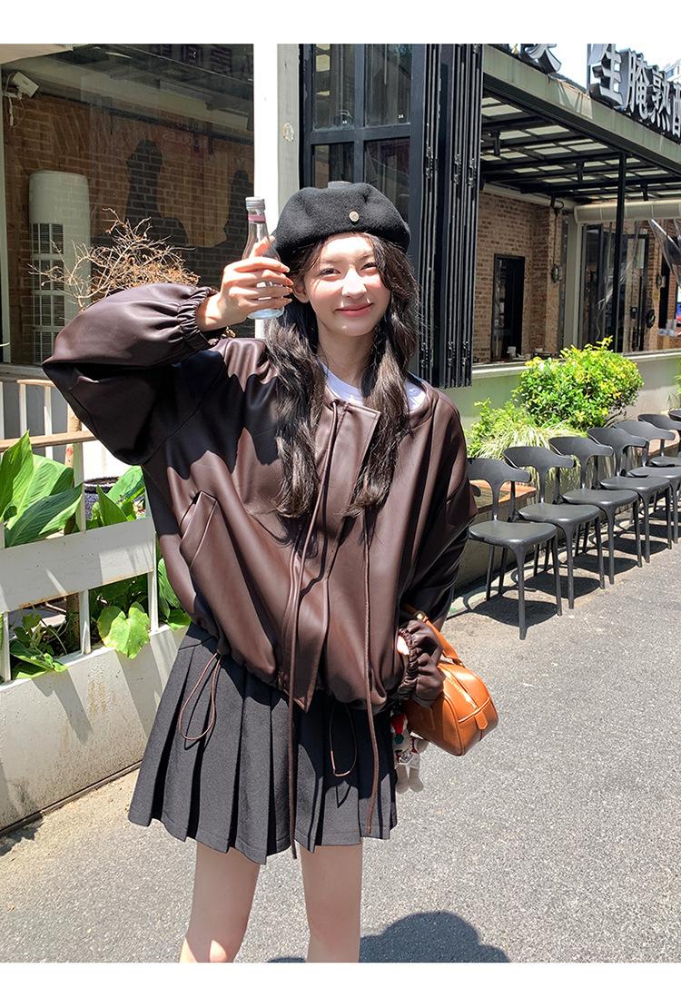 Chaqueta de cuero sintético vintage Maillard para mujer, otoño 2024, nuevo estilo, chaqueta corta de cuero para mujer, estilo petite, antiedad, tops