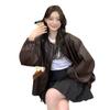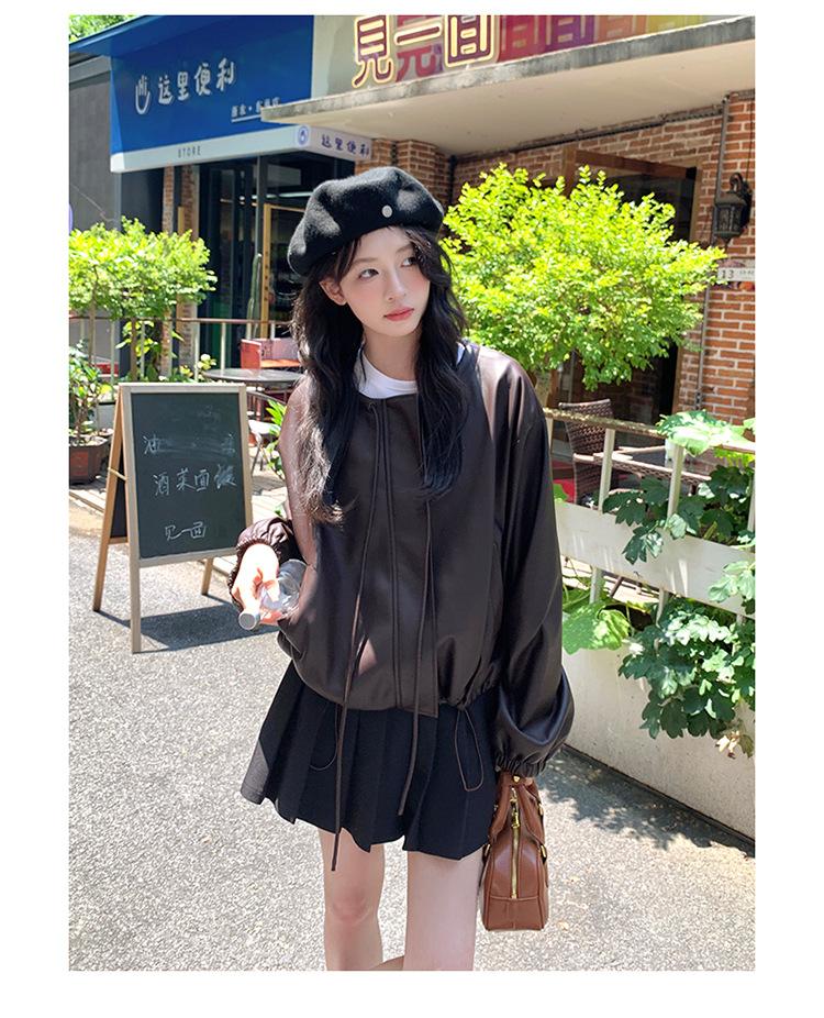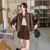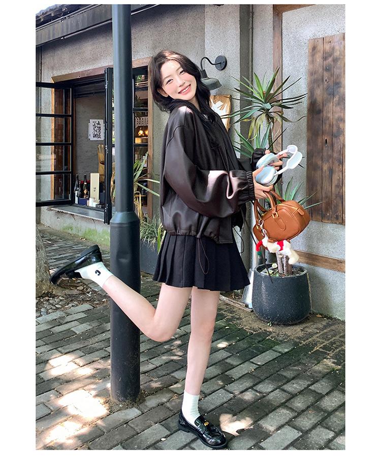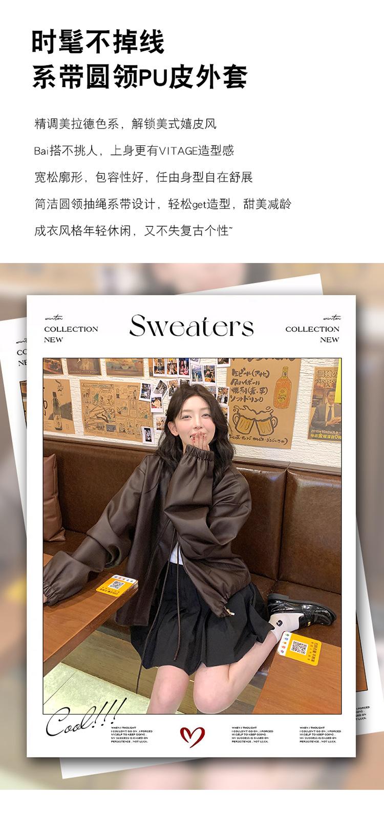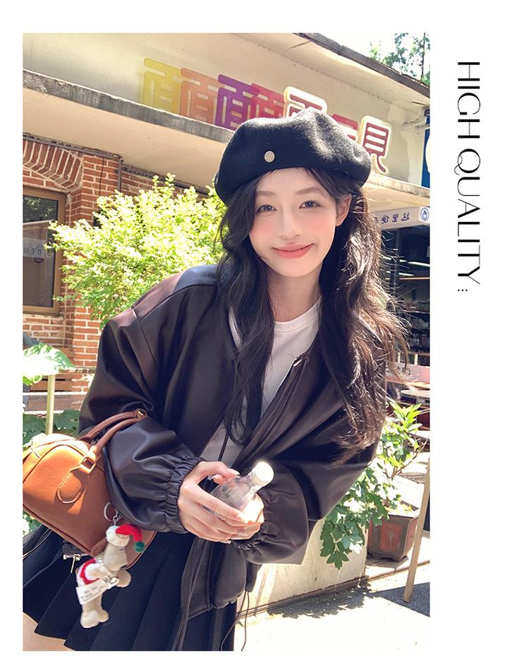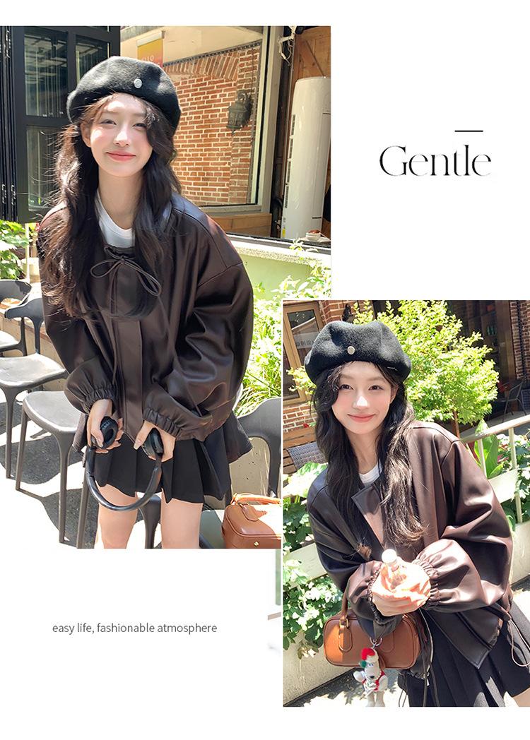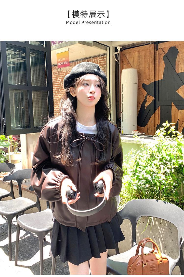 Chaqueta de cuero sintético vintage Maillard para mujer, otoño 2024, nuevo estilo, chaqueta corta de cuero para mujer, estilo petite, antiedad, tops