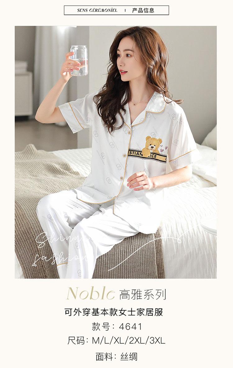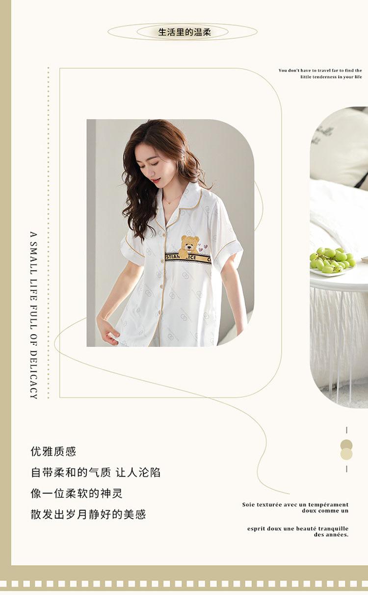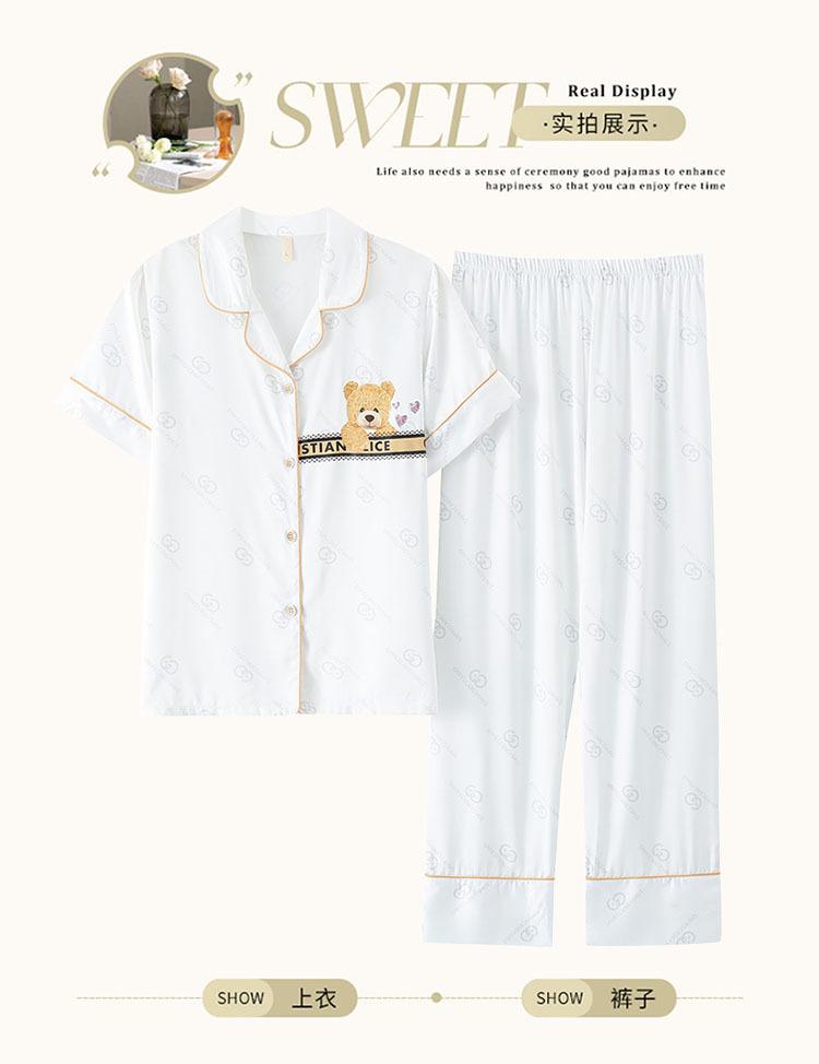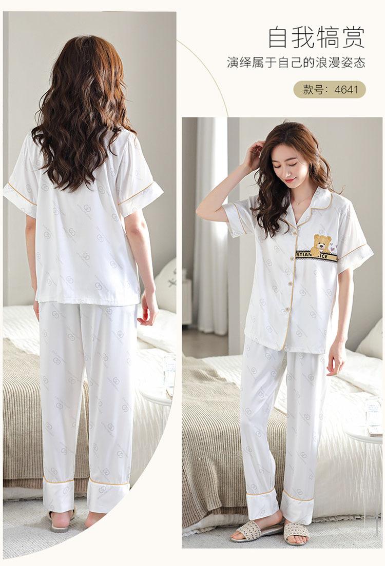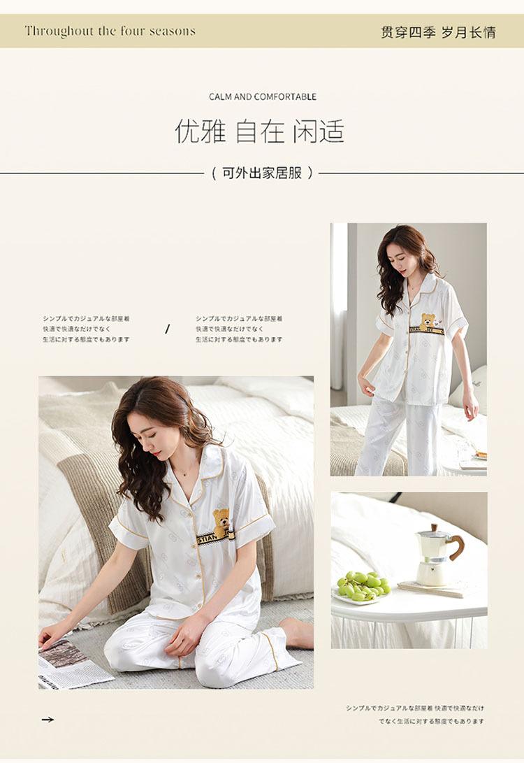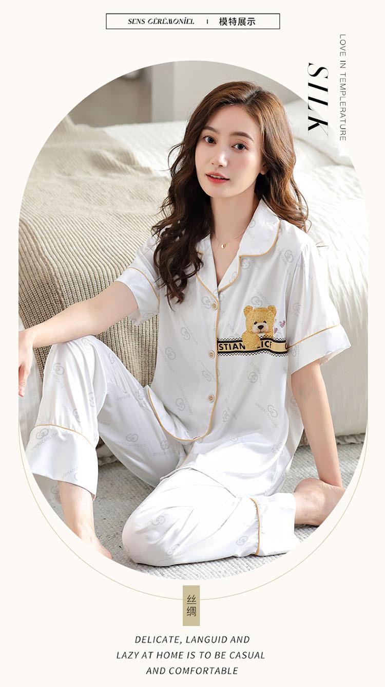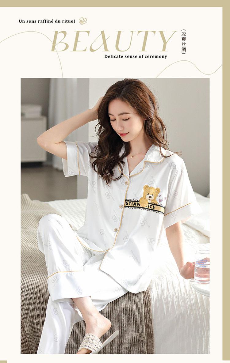 Pijama de Seda de Hielo para Mujer Nuevo Verano Delgado Seda Manga Corta Pantalones Traje Ropa de Casa de Alta Gama