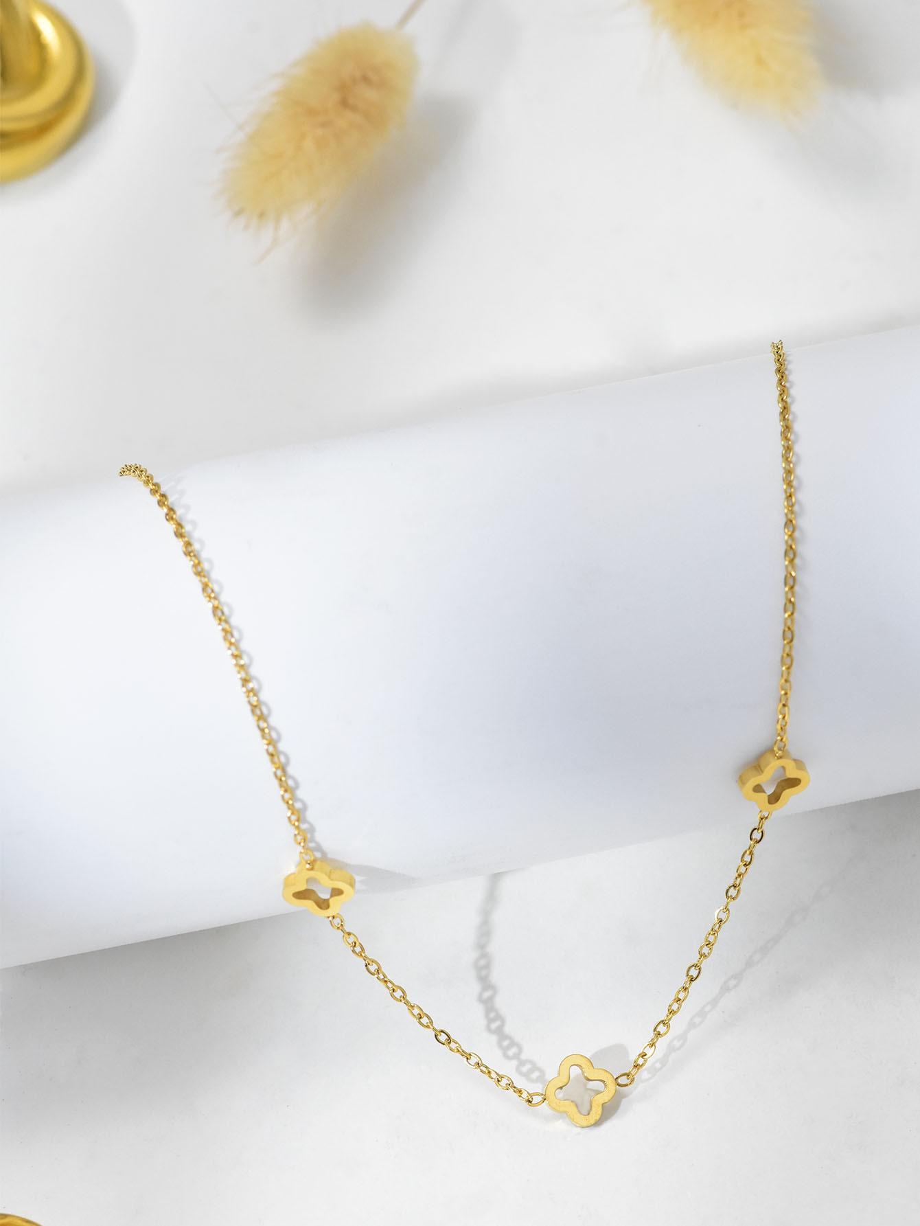 Collar sencillo y elegante de acero inoxidable con diseño de trébol de cuatro hojas, personalizado, de lujo, estilo europeo y americano, con cadena de clavícula y diseño de nicho para mujer.