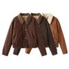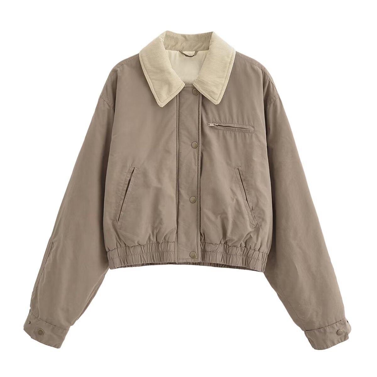 Chaqueta de Algodón para Mujer Estilo Europeo y Americano Otoño e Invierno Nueva Ropa Maillard Chaqueta de Algodón Cálida Abrigo con Combinación de Colores