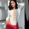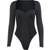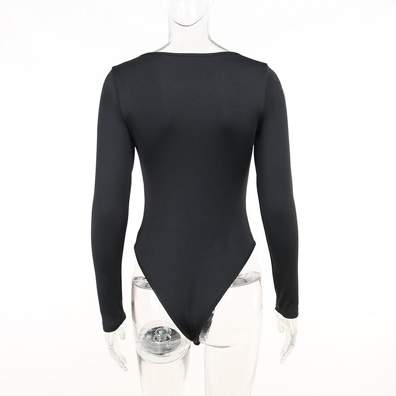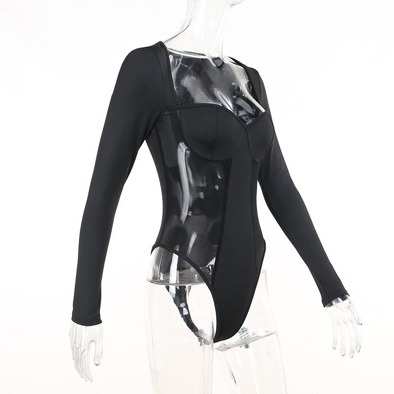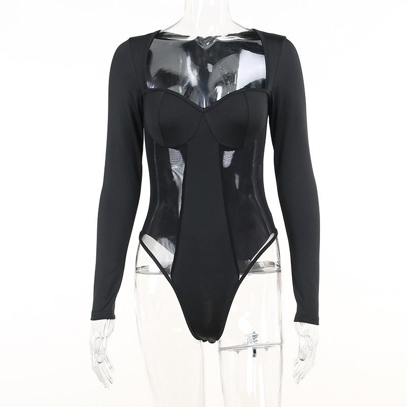 En Stock Europeo y Americano Ins Transfronterizo Otoño Moda para Mujer Comercio Exterior Elegante Transparente Patchwork Cuello Cuadrado Manga Larga Mono Ajustado