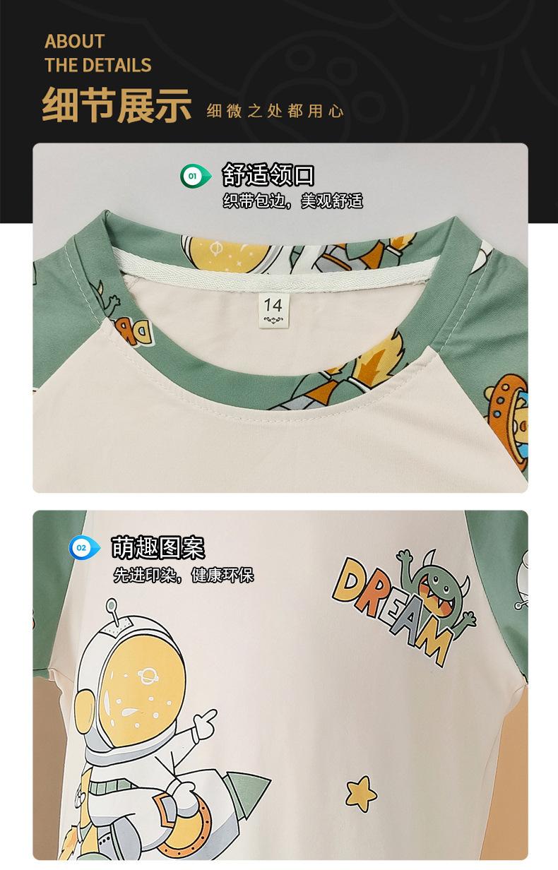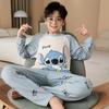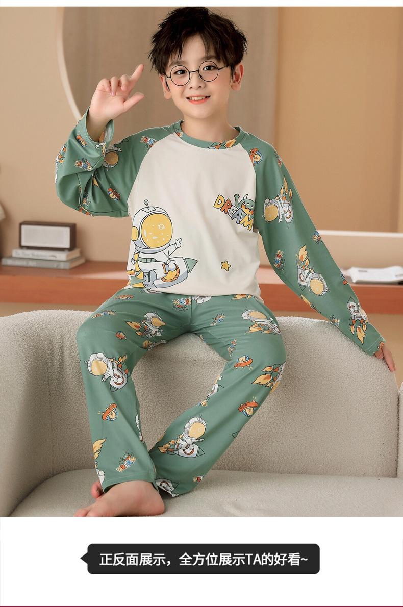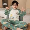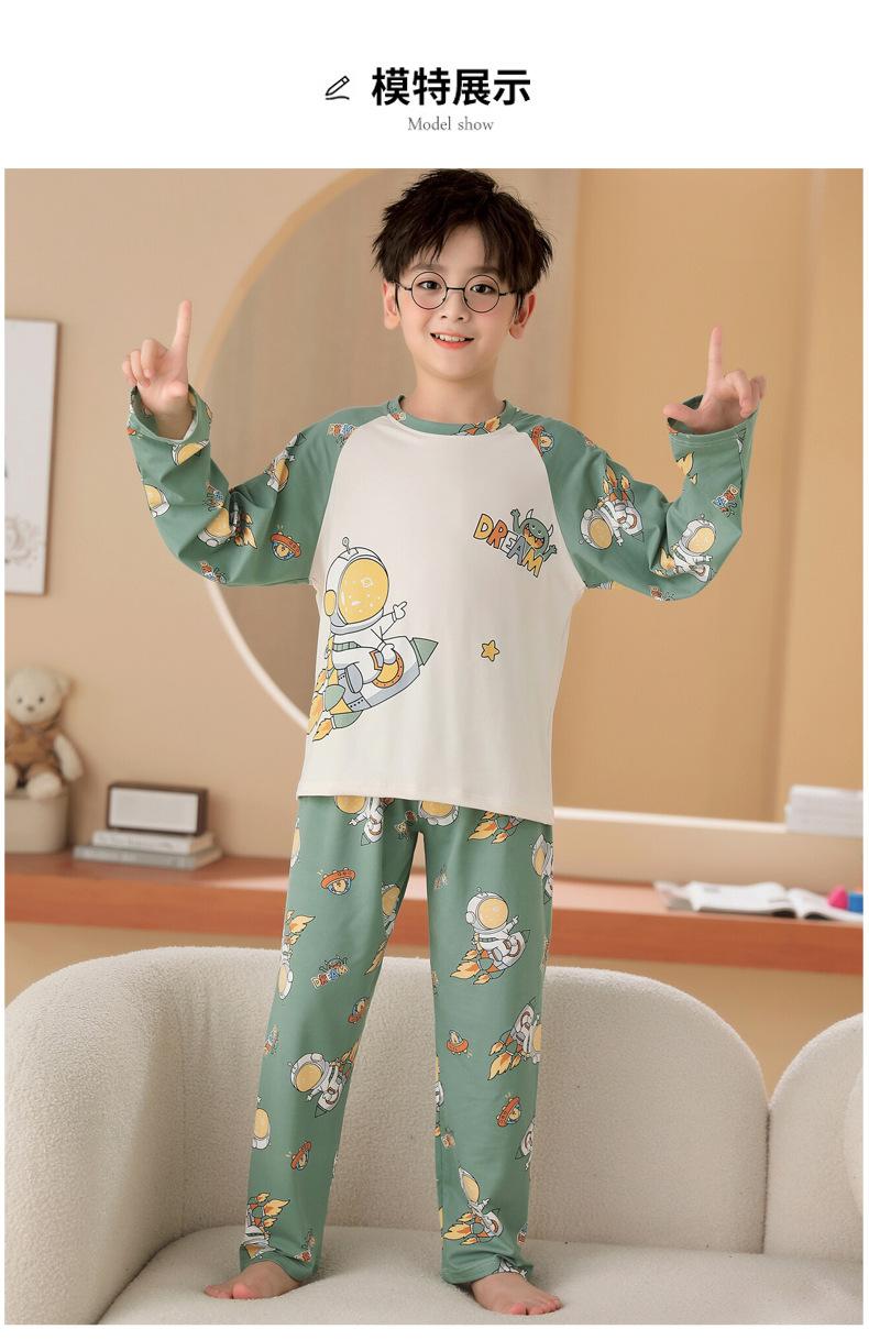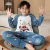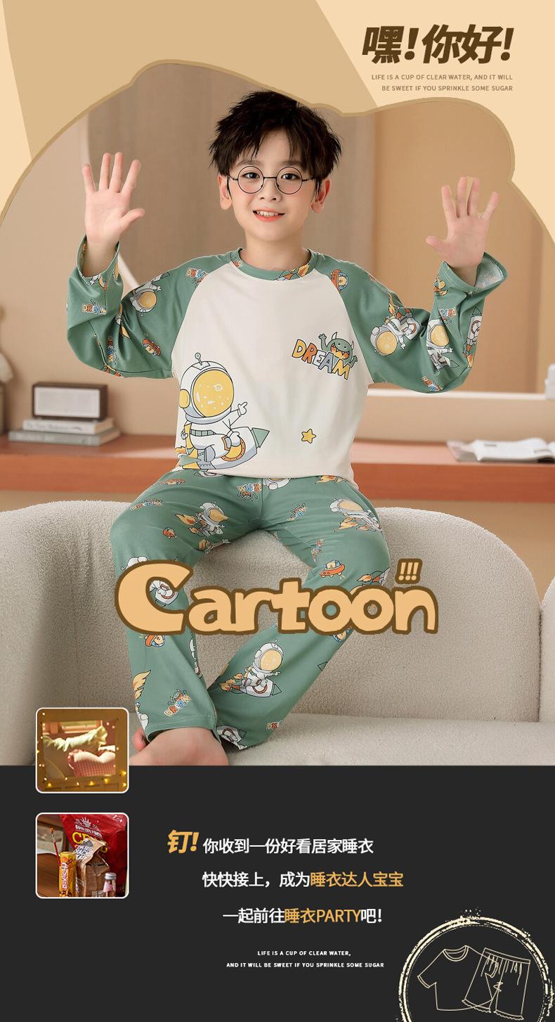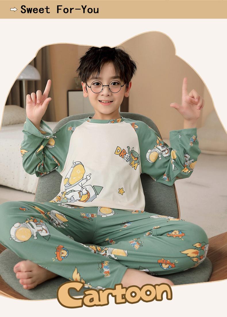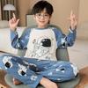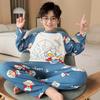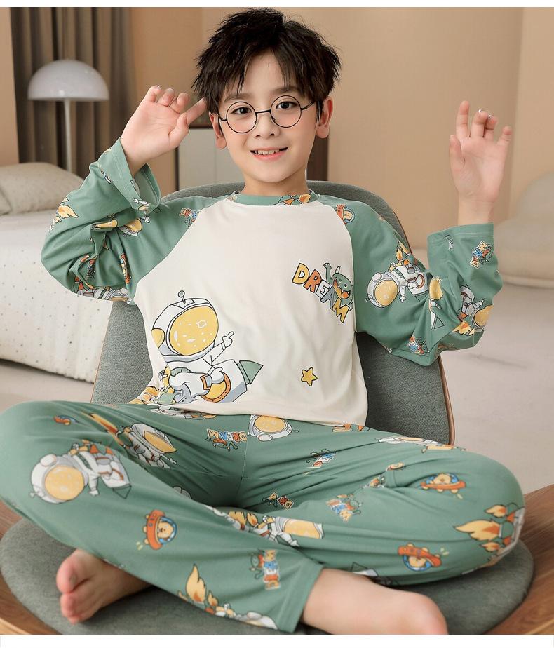 Pijamas de primavera y otoño para niños, cuello redondo, manga larga, informal, dibujos animados, para niños medianos y grandes, traje holgado y fino, ropa de casa