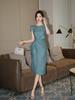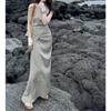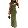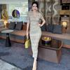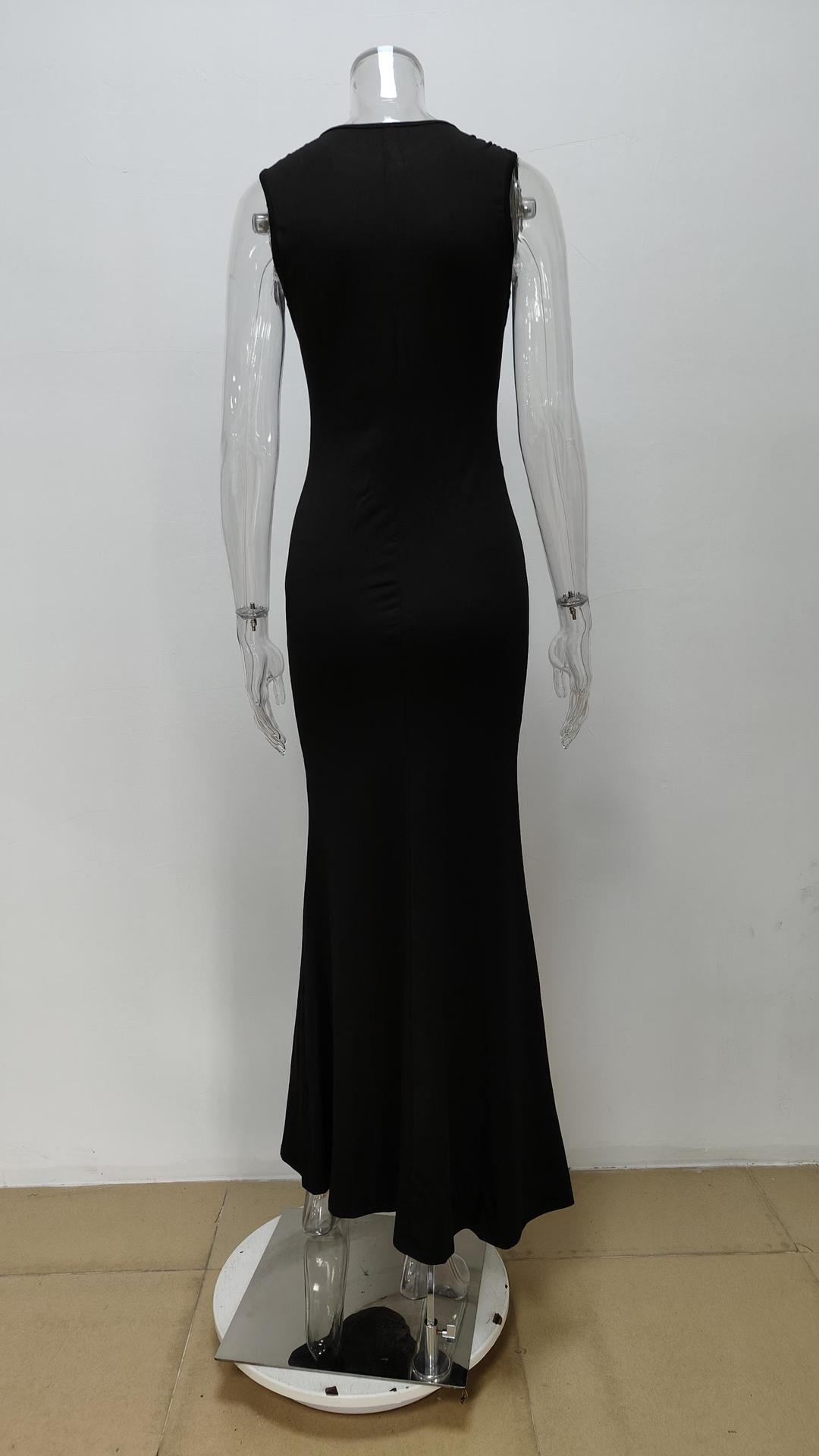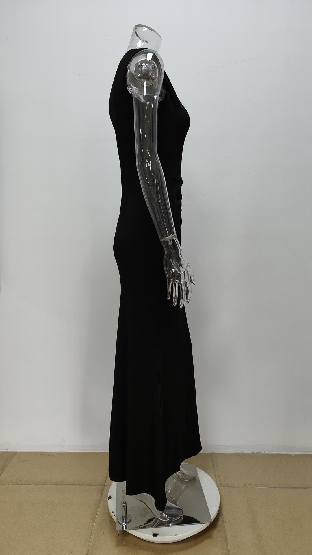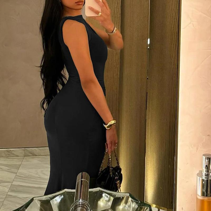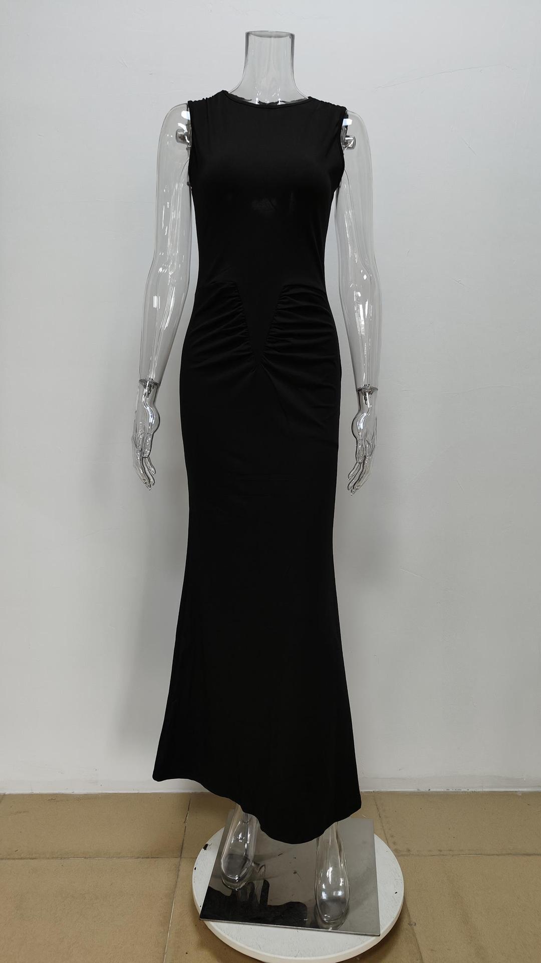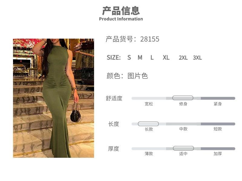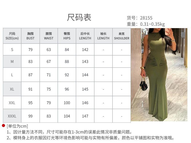 Aliexpress 2025 Ropa Nueva Europea y Americana Color Sólido Temperamento Sexy Ajustado Plisado Cadera Cintura Vestido 661