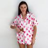 Pijamas de verano para mujer, de espuma con dibujos animados, con mangas cortas y tirantes finos, conjunto de dos piezas para el hogar