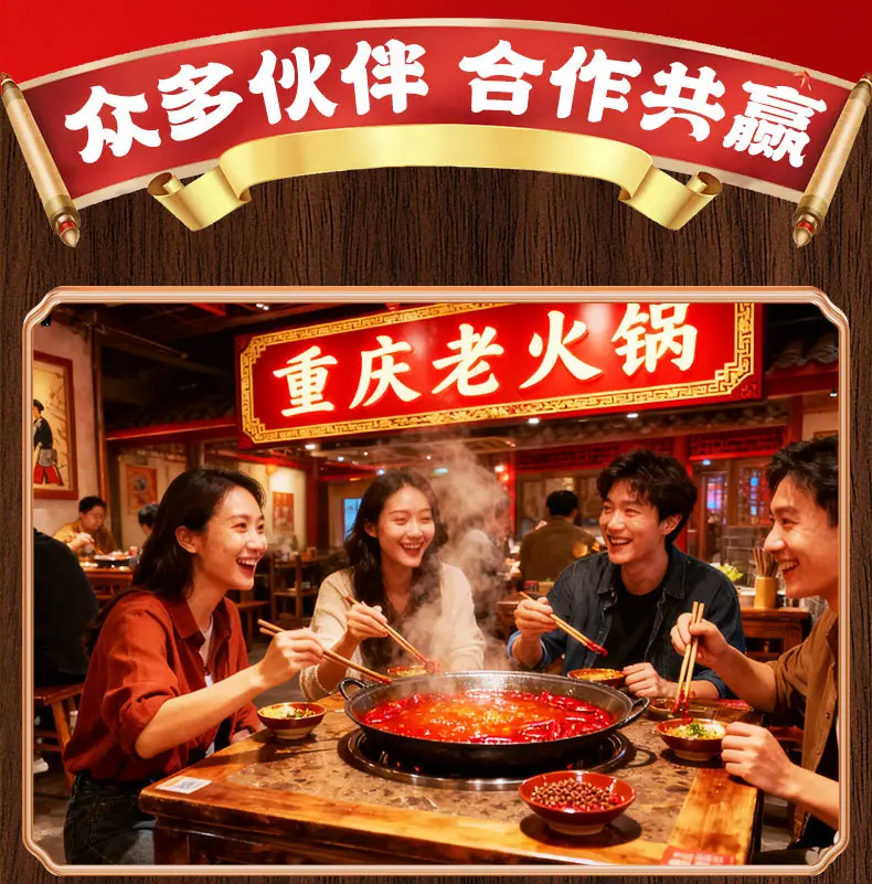 Puesto comercial de base de mantequilla para olla caliente antigua de Chongqing de Gongtingju, cadena de sopa picante fragante al por mayor