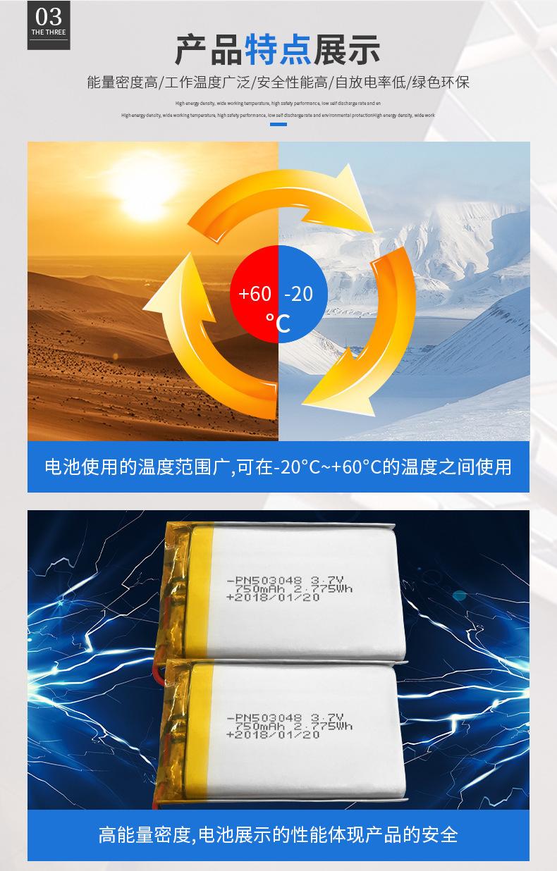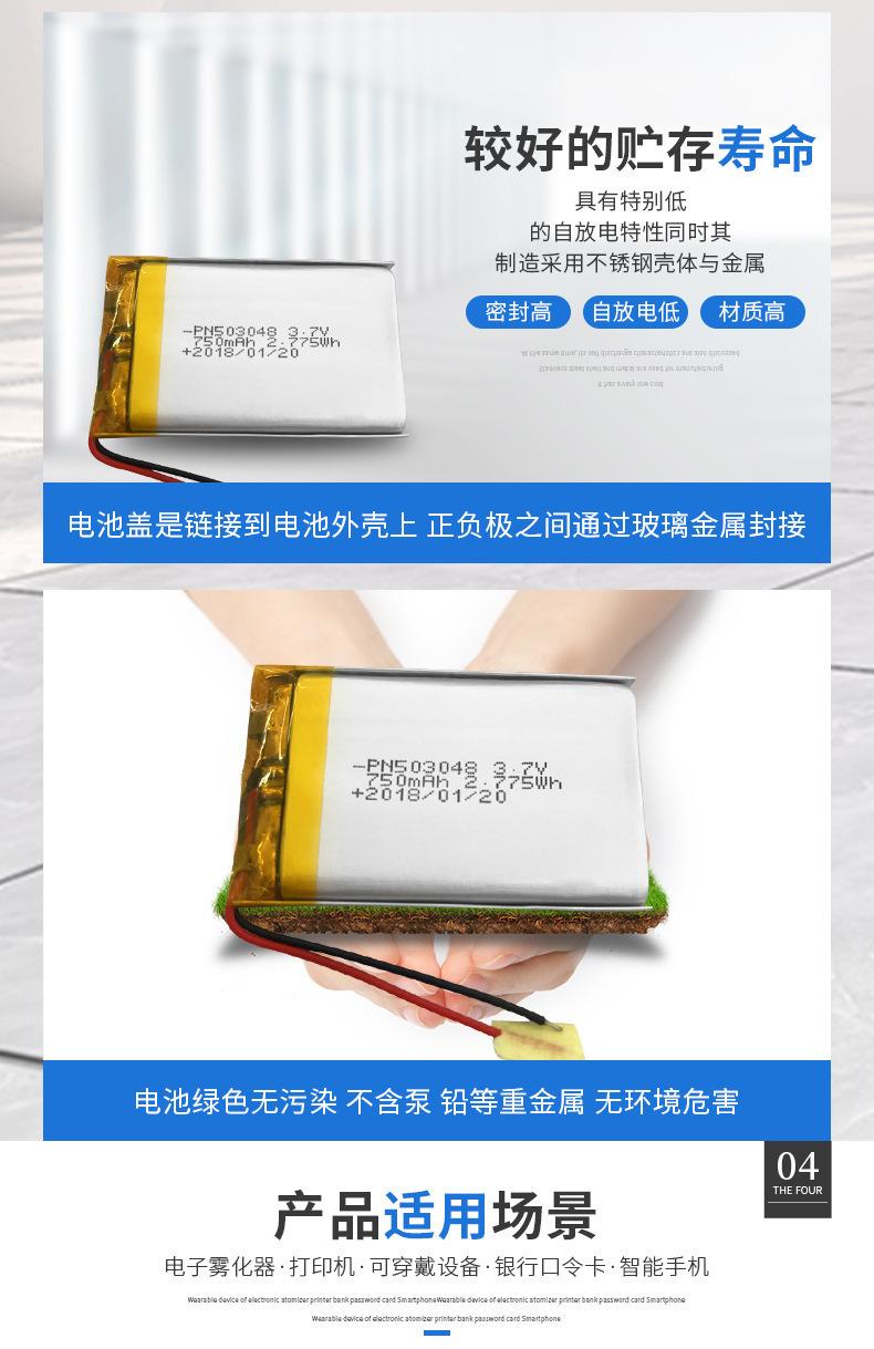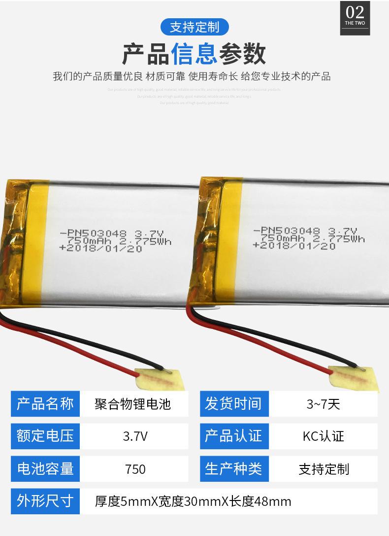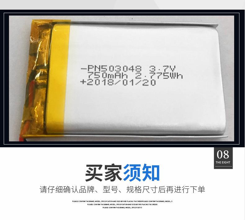 Fabricantes de origen mayoreo 503048 3.7V 750mAh batería de polímero de litio portátil de larga duración recargable