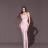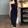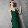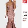 2020 Vestido de Mujer Europeo y Americano con Lentejuelas Cuello en V Sexy sin Espalda Largo hasta el Piso Falda Larga Vestido con Tirantes Abertura Elegante
