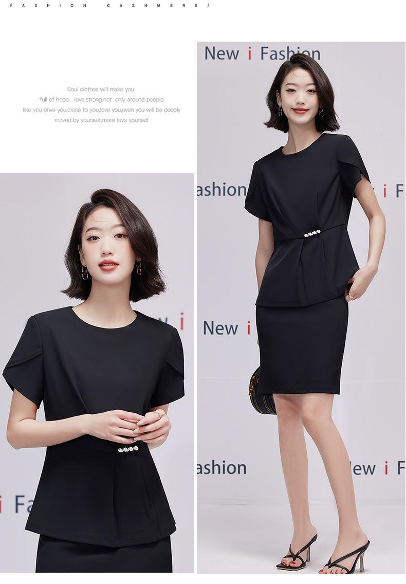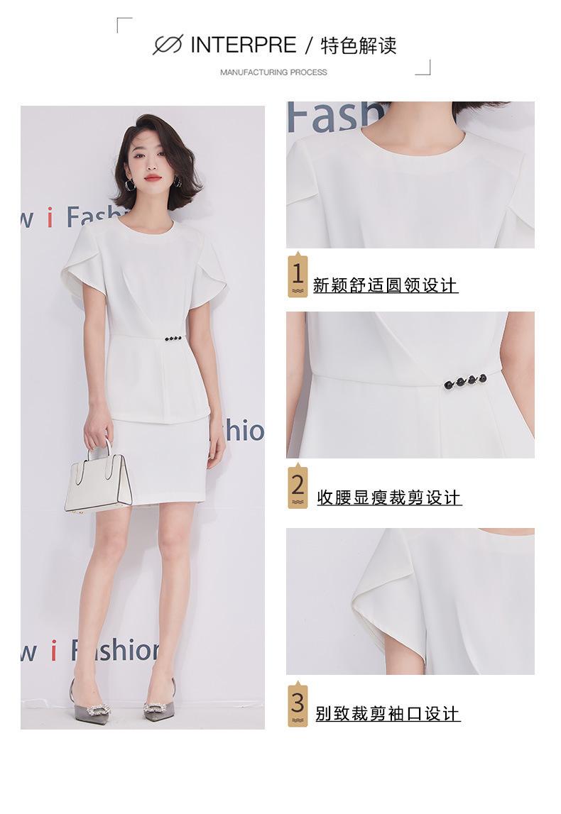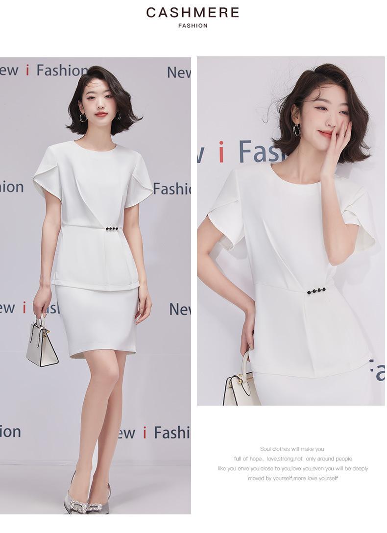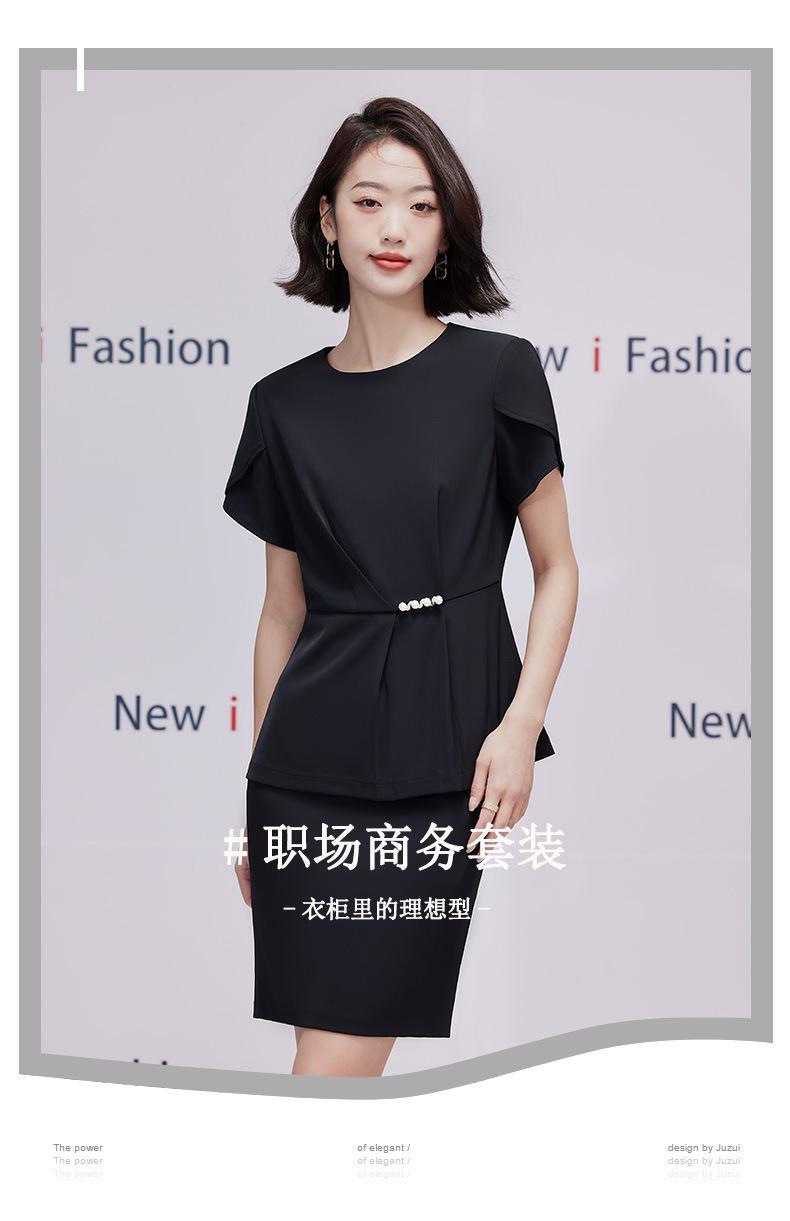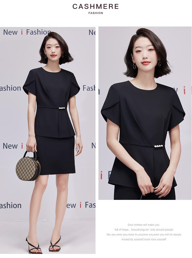 2023 verano nuevo traje de manga corta con cuello redondo chaqueta pantalones falda corta traje de dos piezas temperamento simple para ir al trabajo