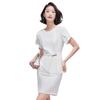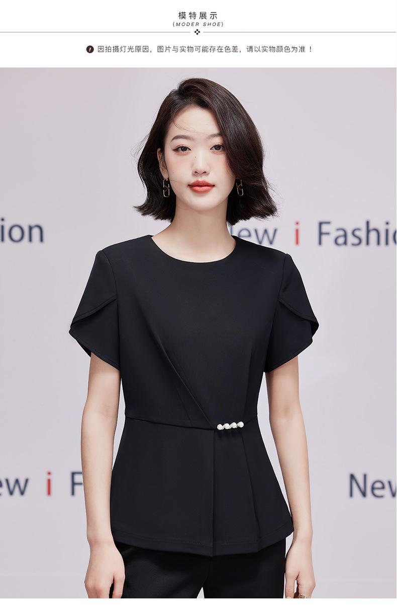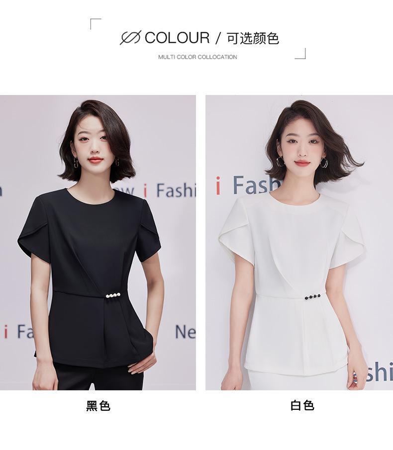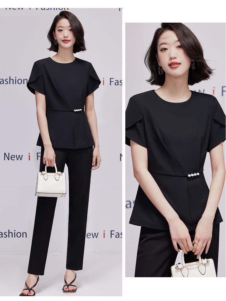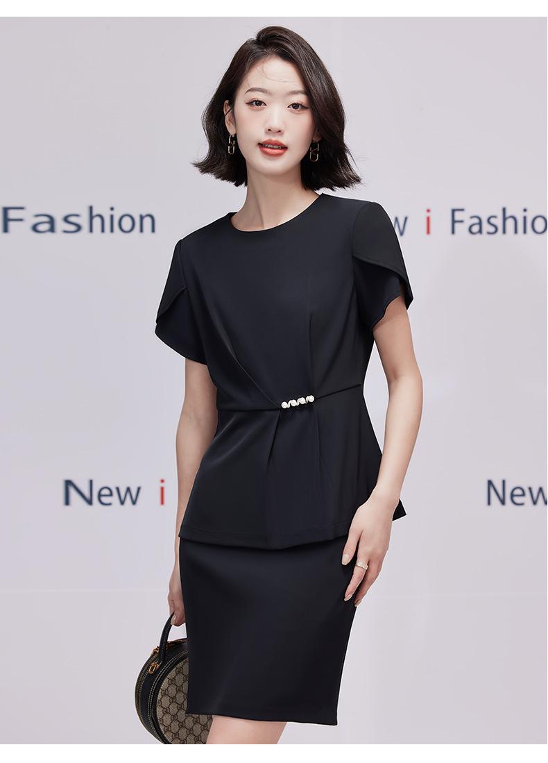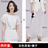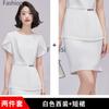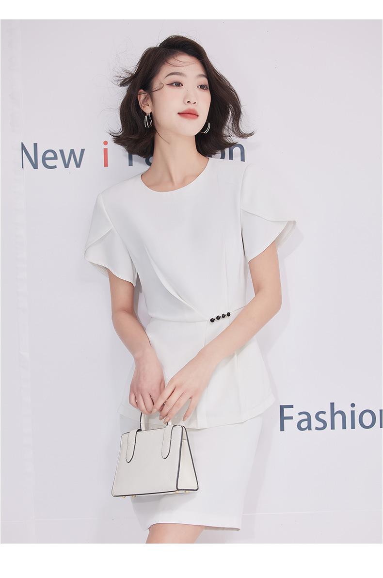 2023 verano nuevo traje de manga corta con cuello redondo chaqueta pantalones falda corta traje de dos piezas temperamento simple para ir al trabajo