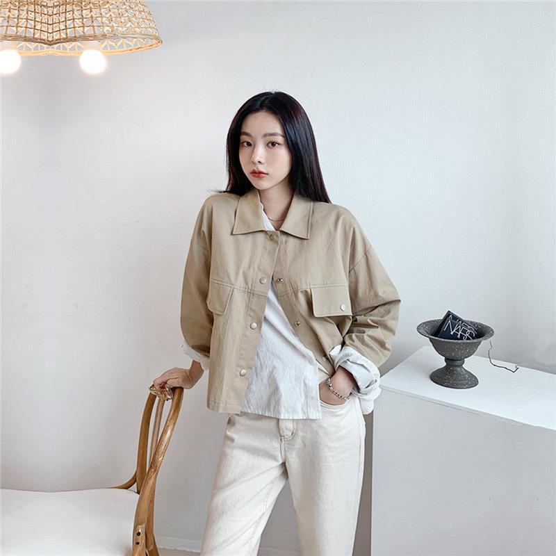 Outono Estilo Harajuku Hong Kong Design Retrô Chic Nicho Casual Jaqueta de Trabalho Top Casaco Curto Feminino Ins Tendência